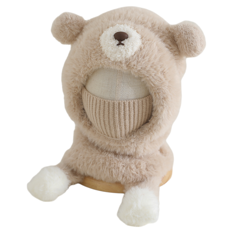 尼多熊婴儿帽子秋围脖一体宝宝毛绒帽防风护耳帽冬季保暖婴幼儿帽