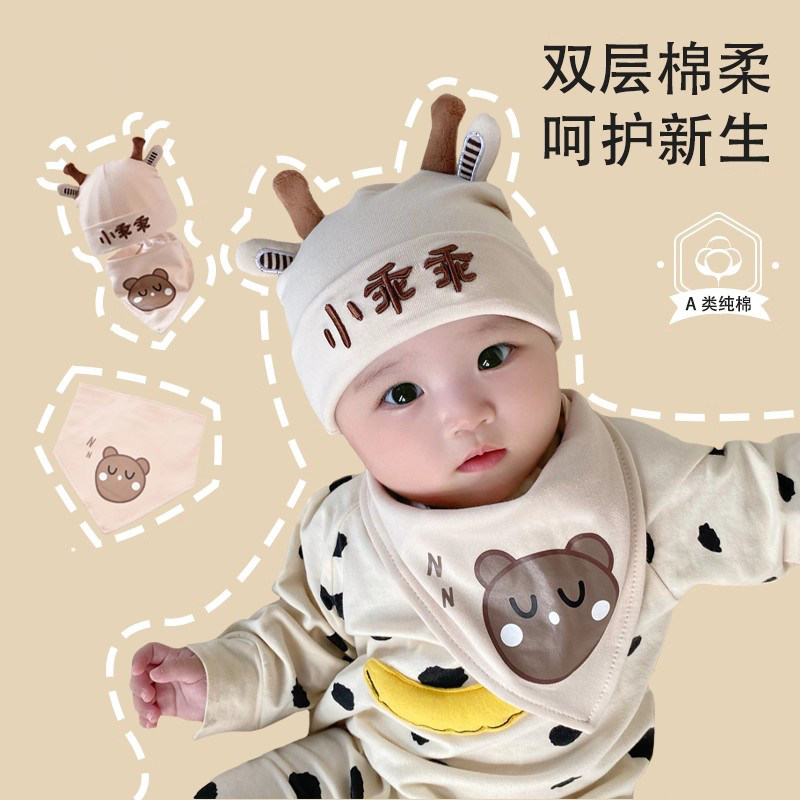 婴儿帽子宝宝男女a类纯棉入秋冬小月龄新生幼儿6到12个月胎帽外出