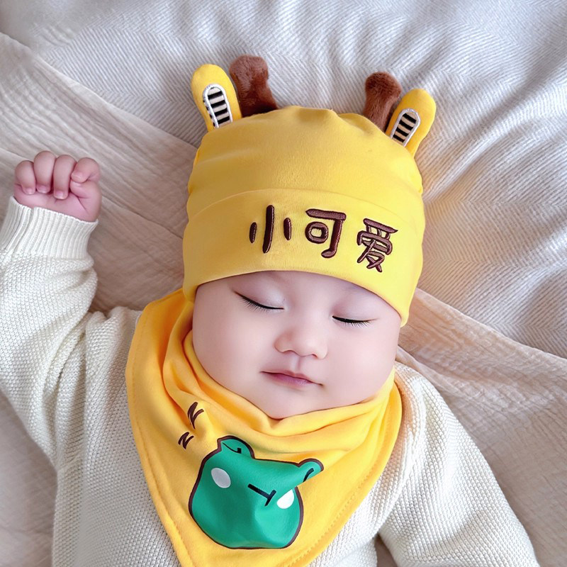 宝宝帽子春秋男孩2025新款女宝纯棉儿童冬季防风堆堆帽围脖两件套