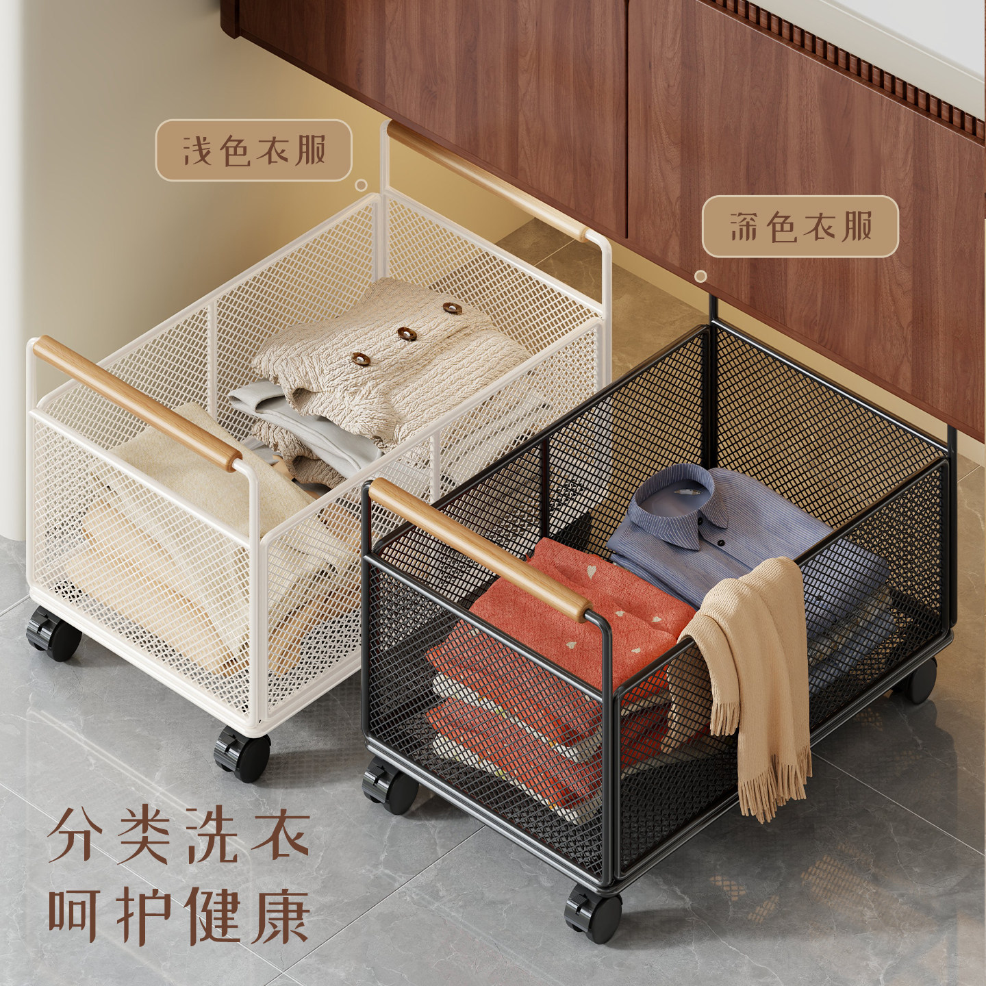 脏衣服可移动收纳筐带轮子家用洗衣篮娃娃收纳桶卫生间放衣物神器