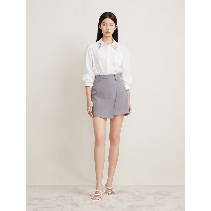【醋酸系列】Goodland美地夏季格雷系不对称门襟半身裙