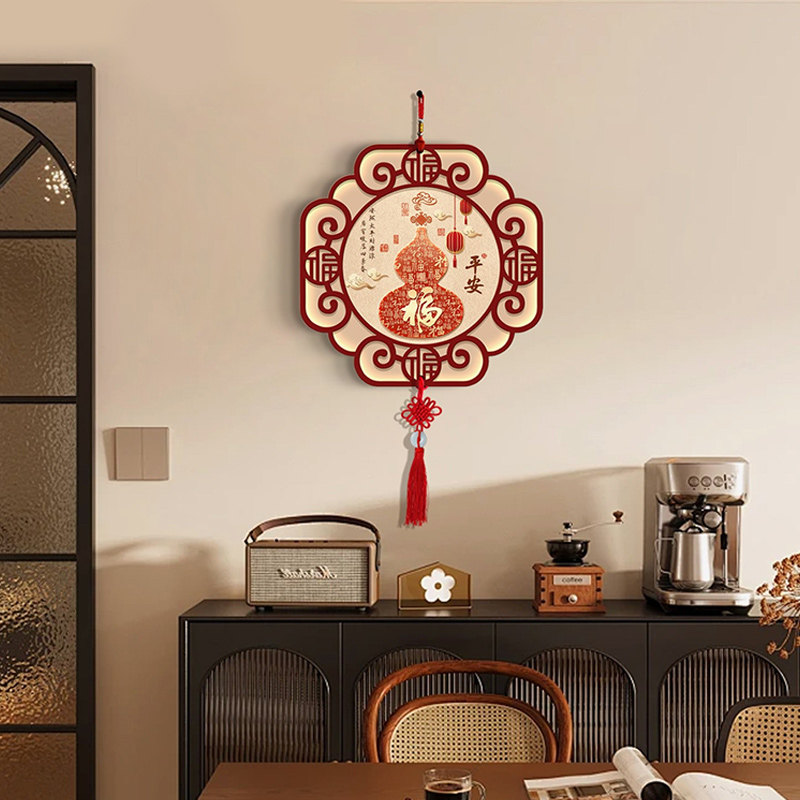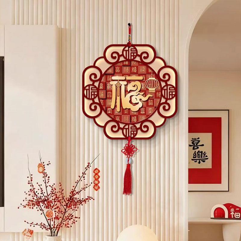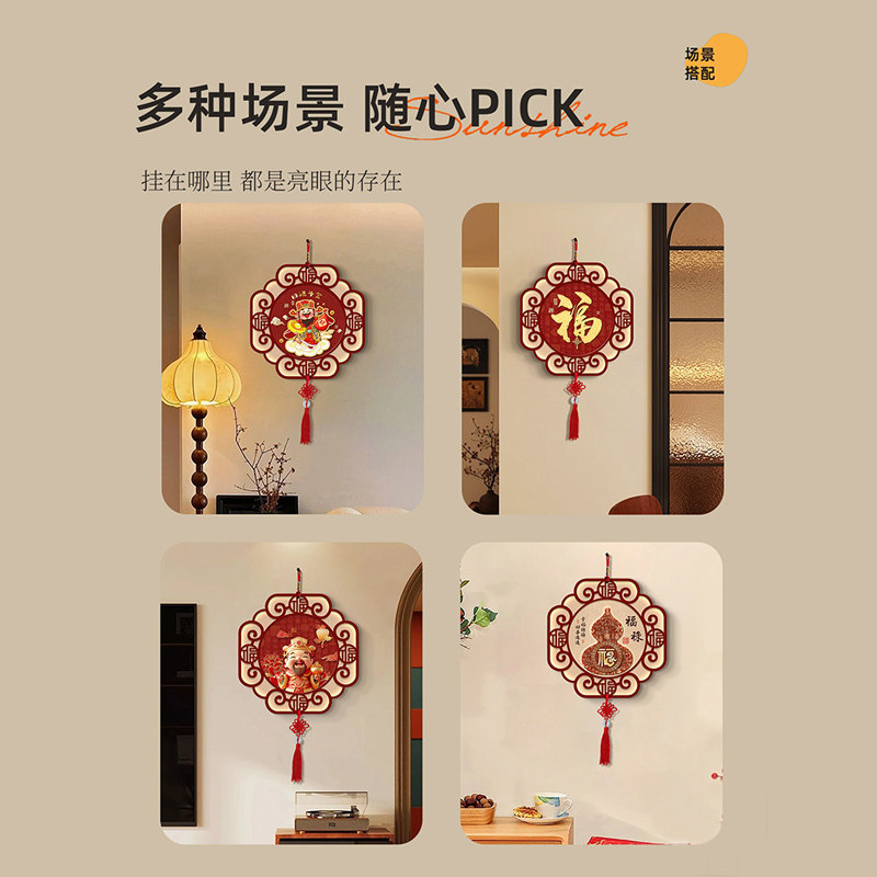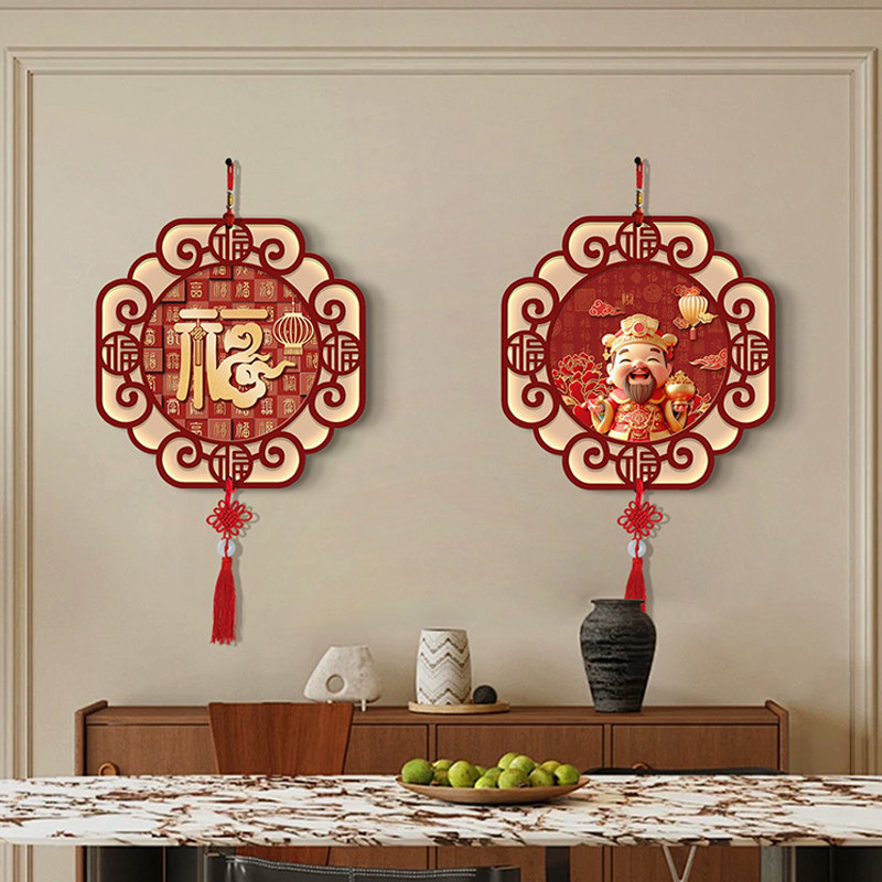 新中式财神爷中国结挂件餐厅墙面挂画国潮喜庆福字挂饰免打孔水晶