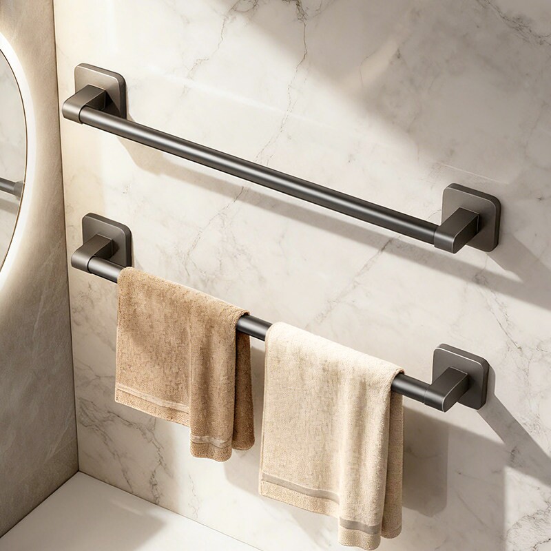 吸盘毛巾架卫生间免打孔浴巾置物架子一体浴室厕所挂杆太空铝套件