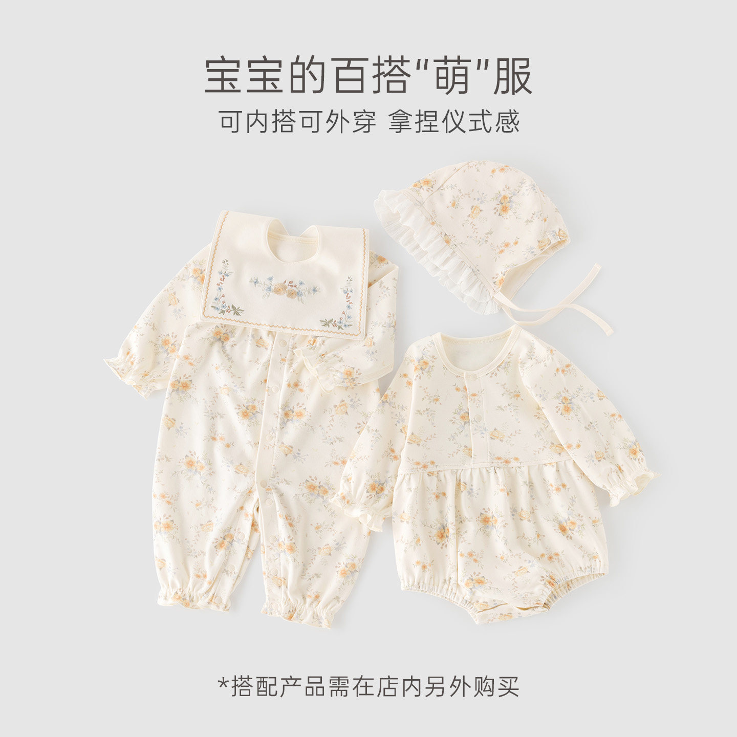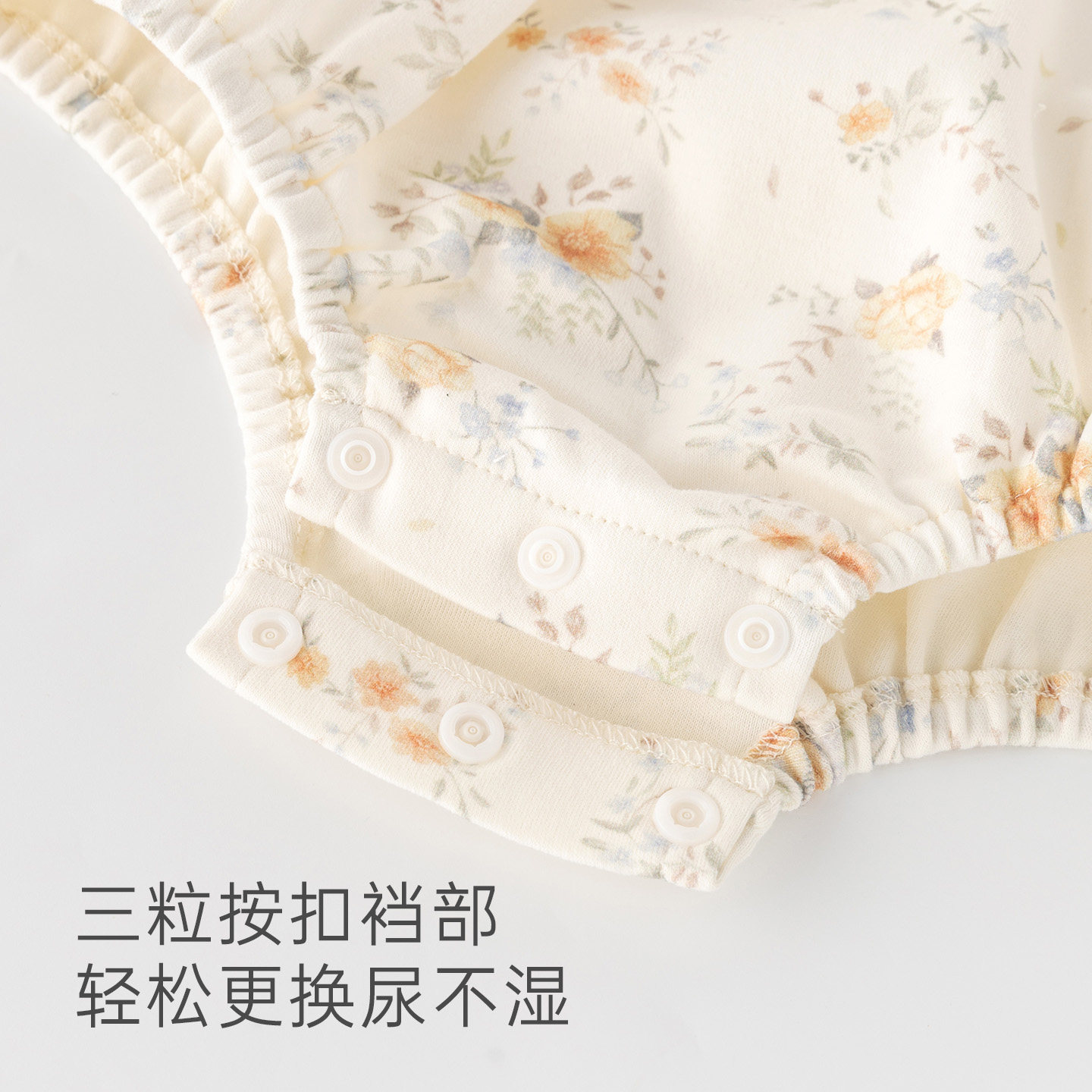 木生棉女宝宝纯棉包屁衣春秋季婴儿碎花三角哈衣公主无骨连体衣服