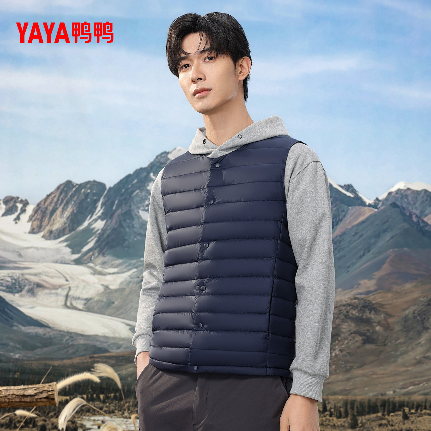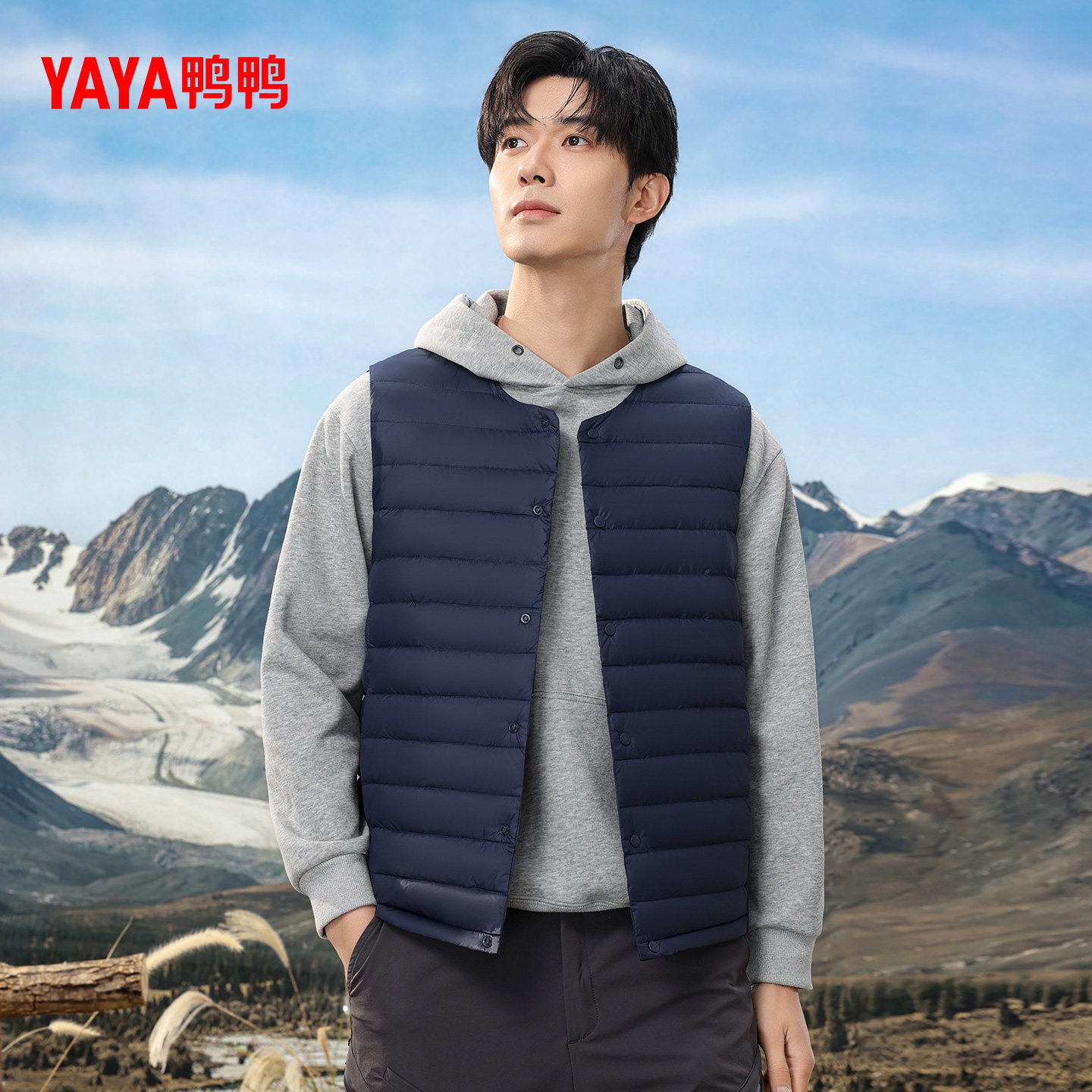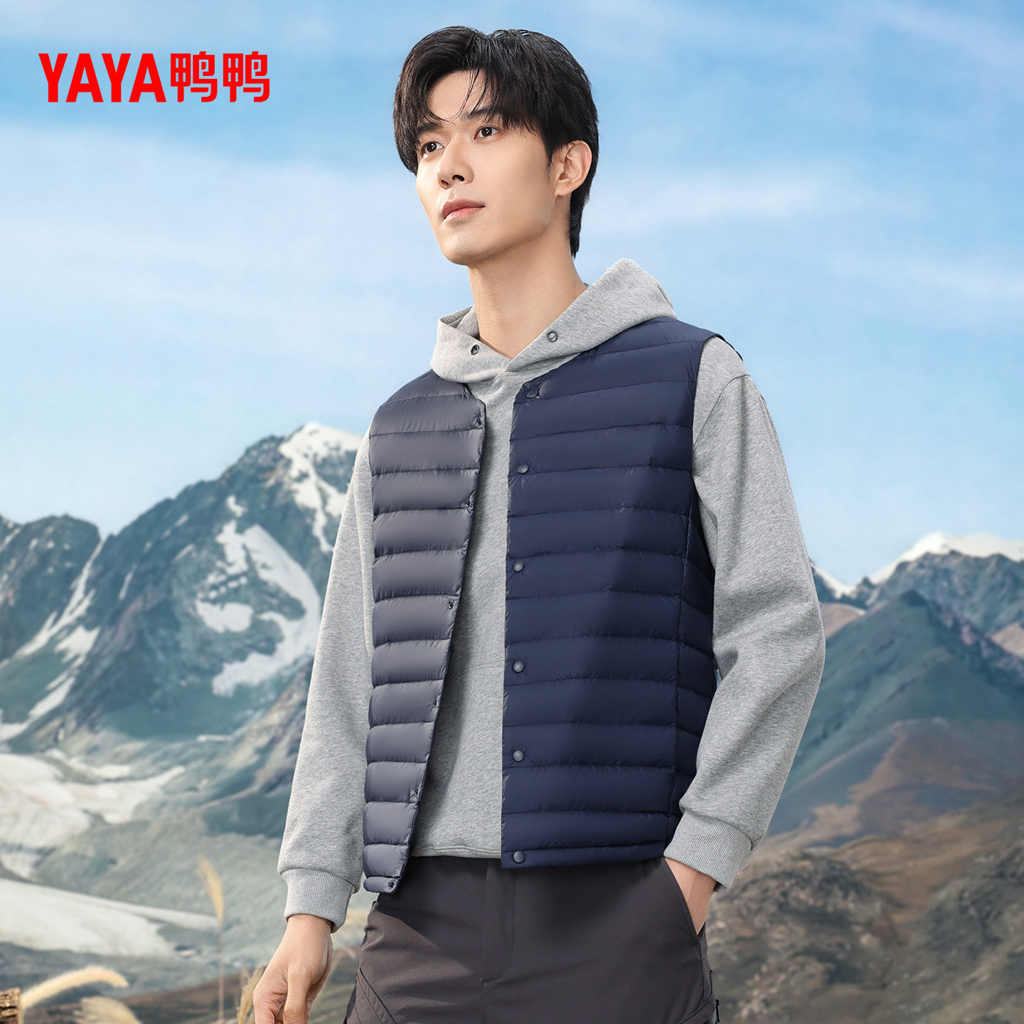 鸭鸭轻薄羽绒服马甲男2025秋冬新品无袖立领修身轻型短款运动外套