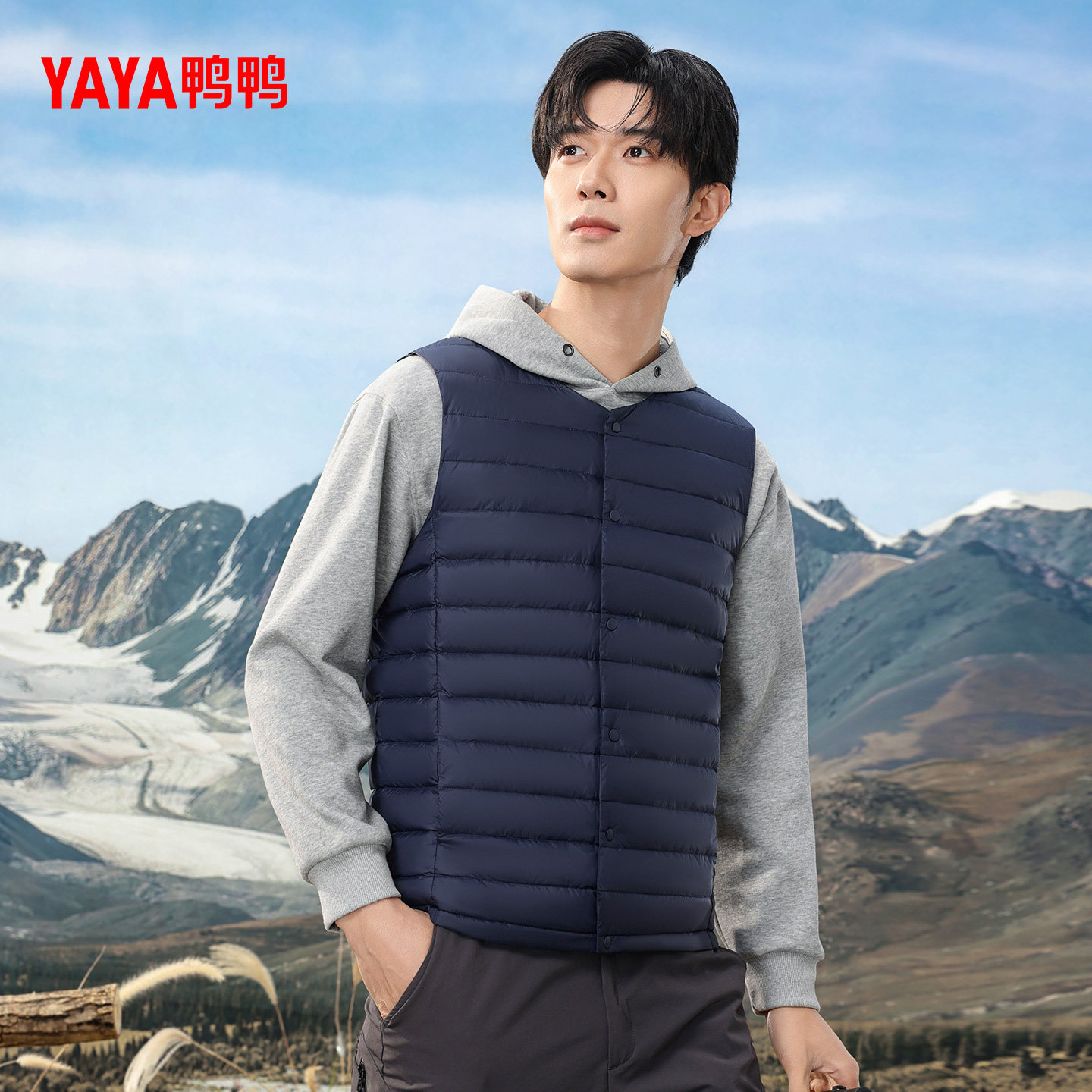 鸭鸭轻薄羽绒服马甲男2025年秋冬反季无袖修身轻型短款运动外套C