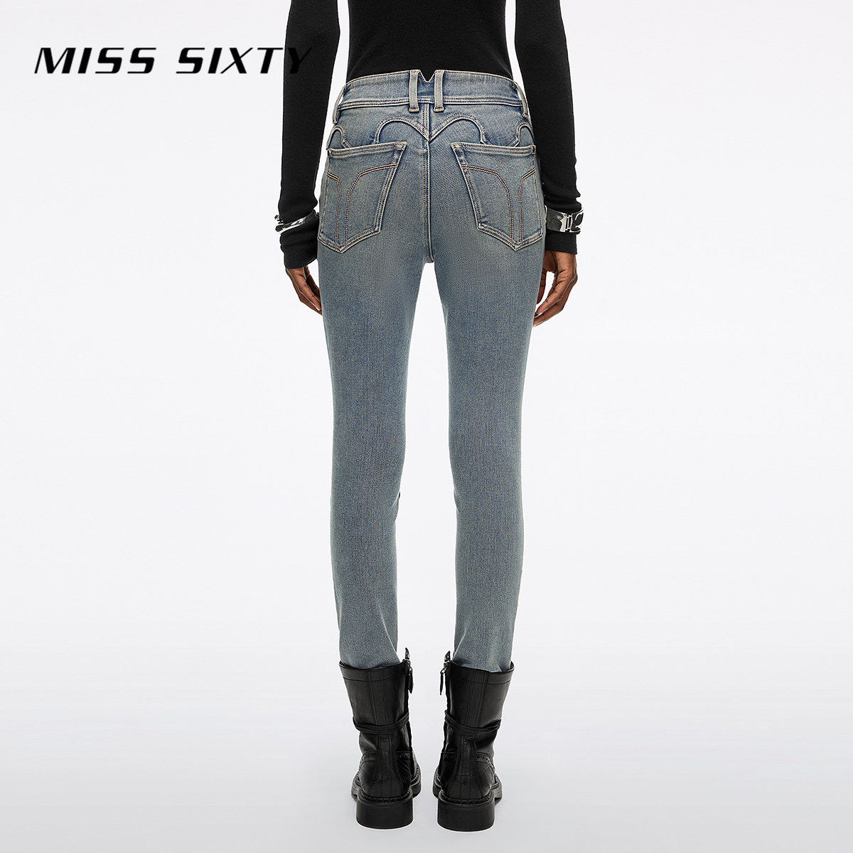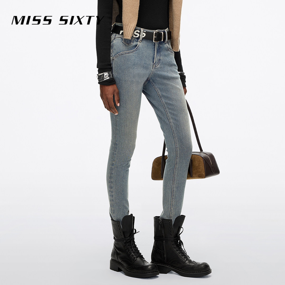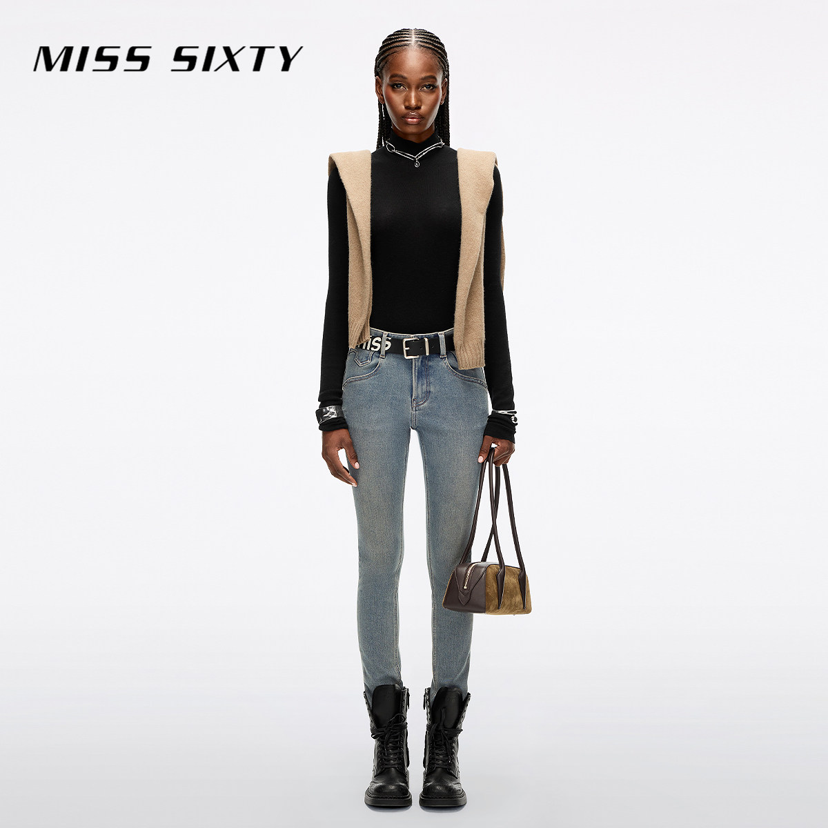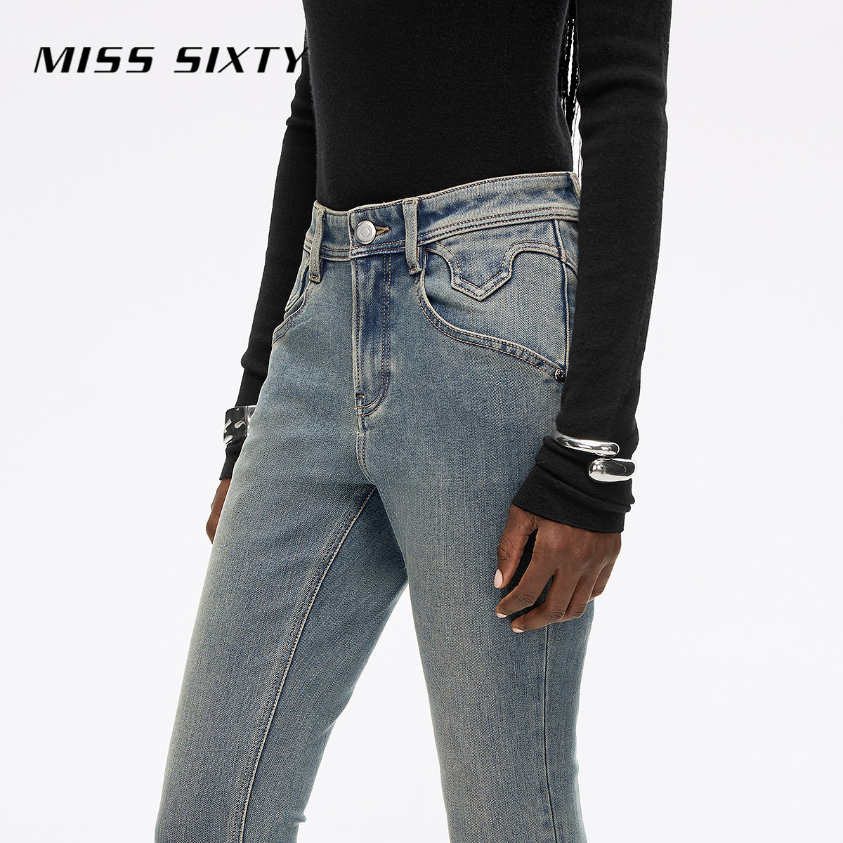 【保暖含羊驼毛】Miss Sixty2025冬季新款牛仔裤磨破显瘦小脚靴裤