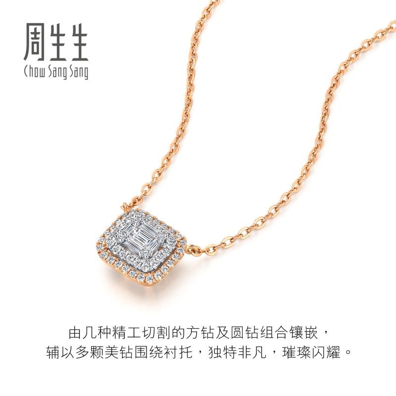周生生珠宝钻之颂永恒之颂方形钻石项链18k金套链93411N