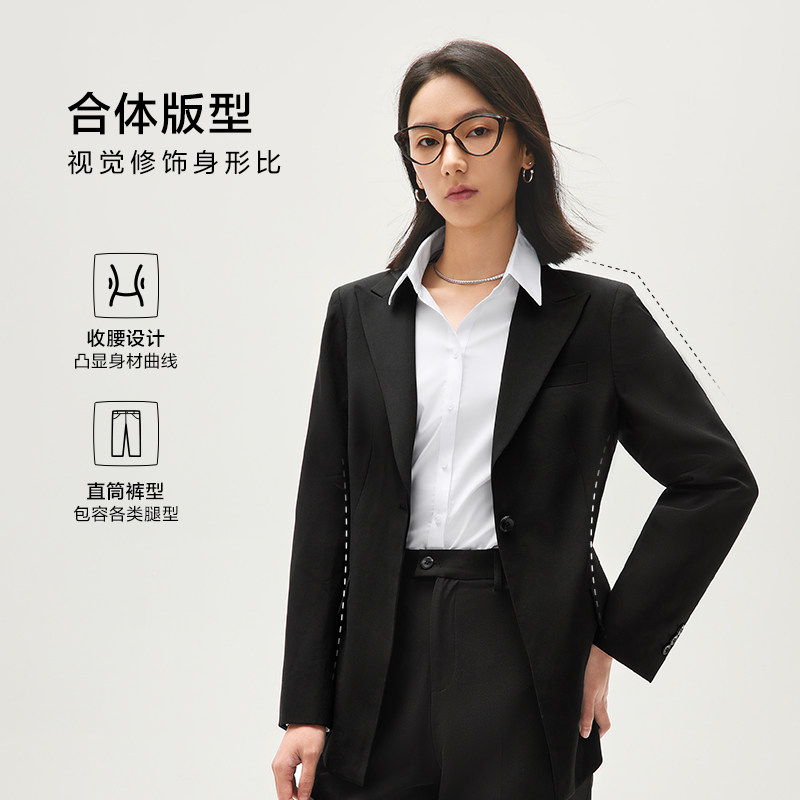 HLA/海澜之家通勤女士正装西服套装秋季新款弹力收腰商务职场套西