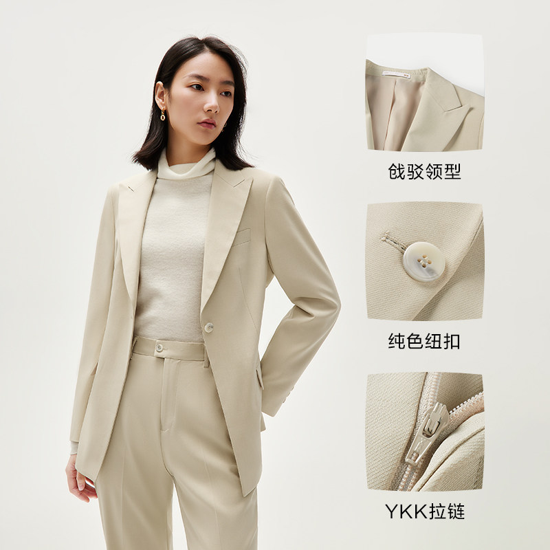 乔妮塔女装2025春秋新款50%羊毛含量高级感双排扣西服小西装外套