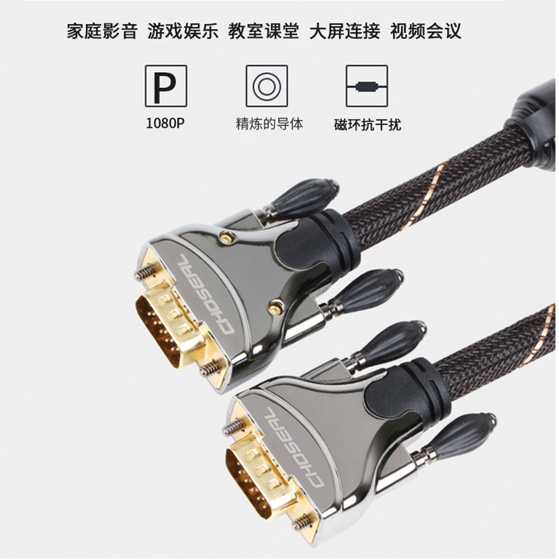 秋叶原HS0005 VGA视频线3+6电脑主机显示器连接线高清线笔记本投影仪纯铜镀金带编织家装布线 可预埋多种长度