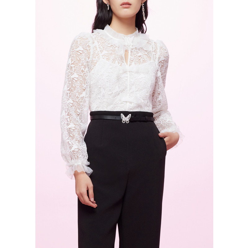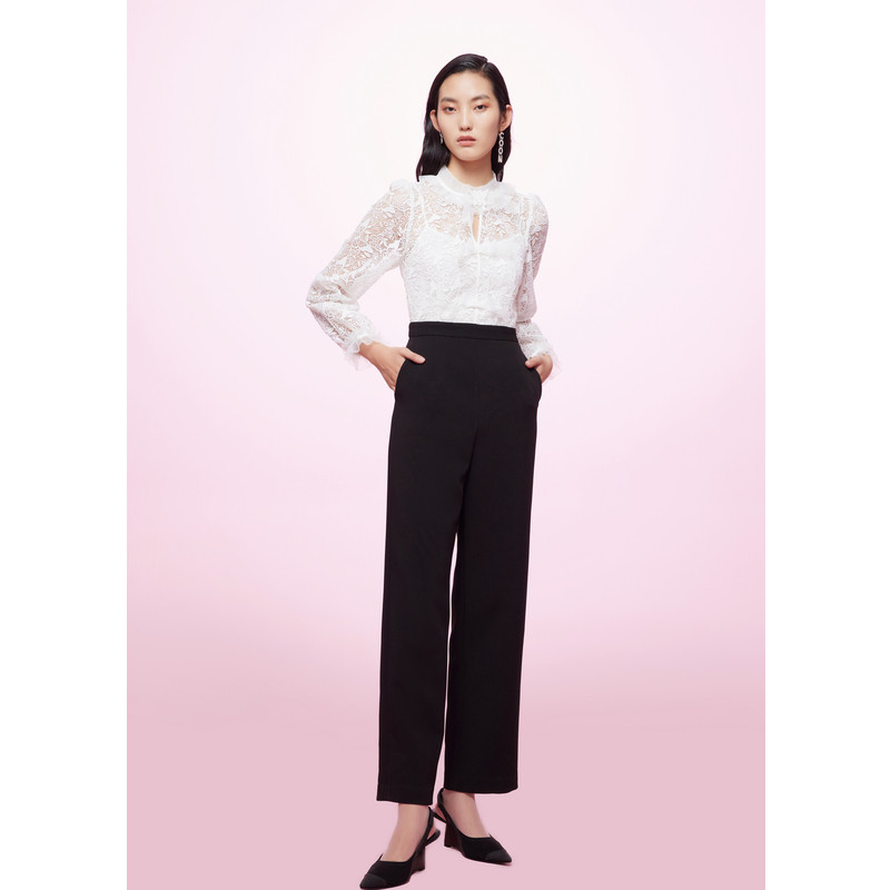 可可尼COCOON商场同款2025秋冬新款女蕾丝拼接黑白撞色时尚连体裤