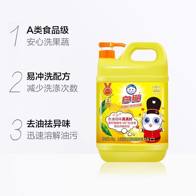 白猫柠檬红茶洗洁精家用正品去油家庭装可洗果蔬食品按压瓶大桶