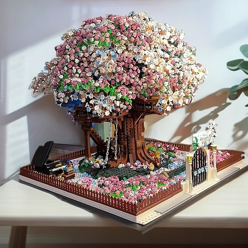 樱花树屋积木永生玫瑰花束盆栽手工diy建筑模型拼装玩具女生礼物