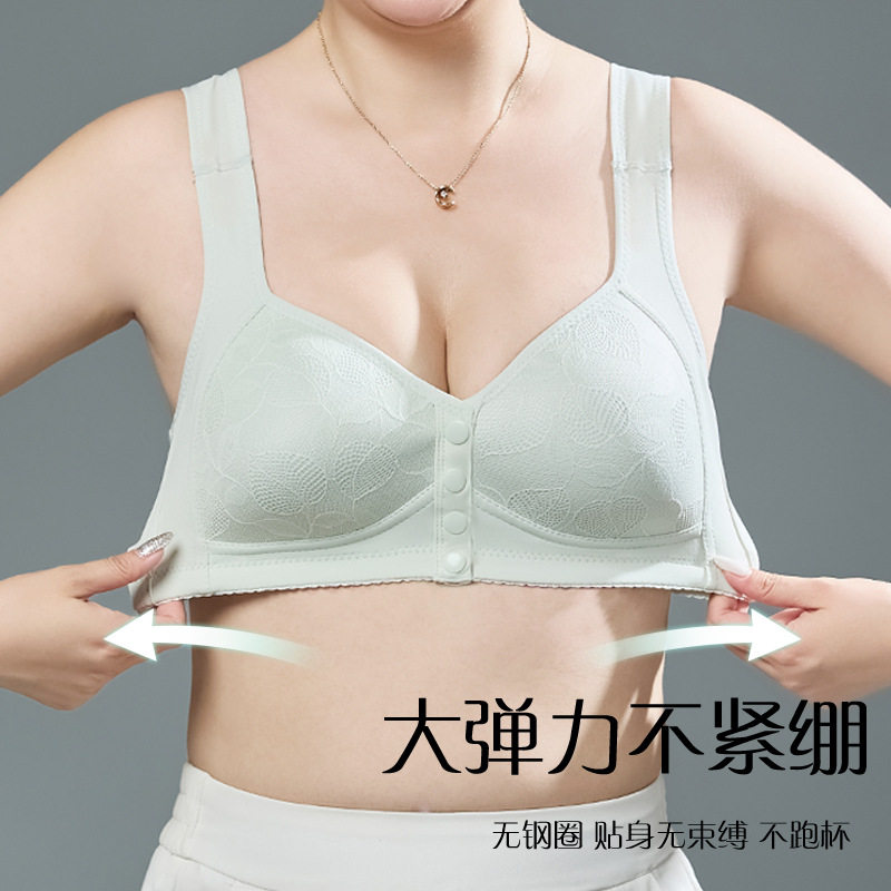 前扣透气内衣中年妈妈文胸夏季聚拢大码薄款女士胸罩防下垂前开扣