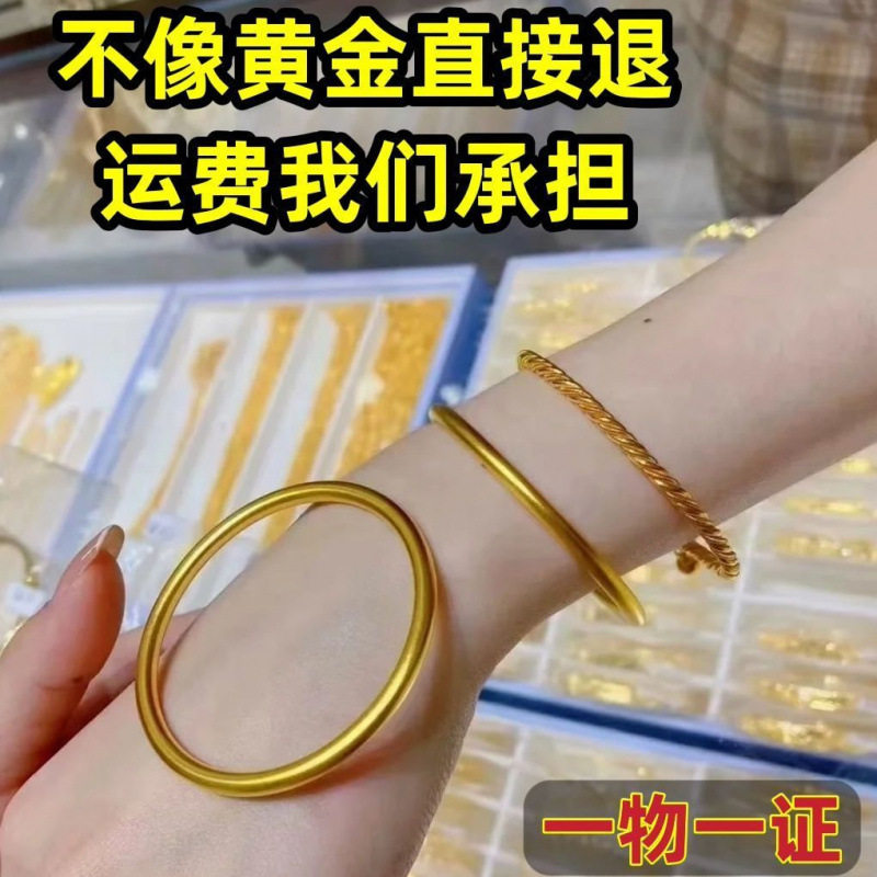 古法传承手镯女仿真黄金正品实心越南沙金素圈不掉色福牌手链首饰