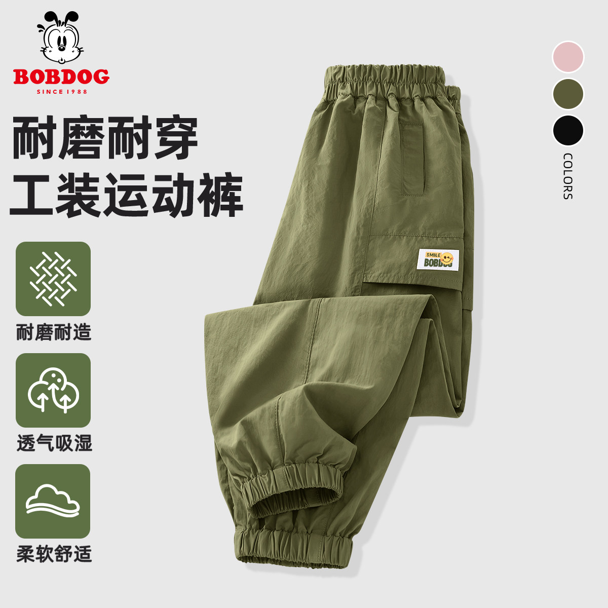 巴布豆男童裤子秋季薄款2025新款春秋款儿童装工装裤秋装运动长裤