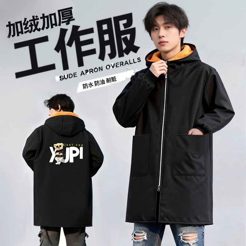 保暖加绒罩衣工作服御寒加厚厨房冬季长袖围裙防水防油污成人舒适