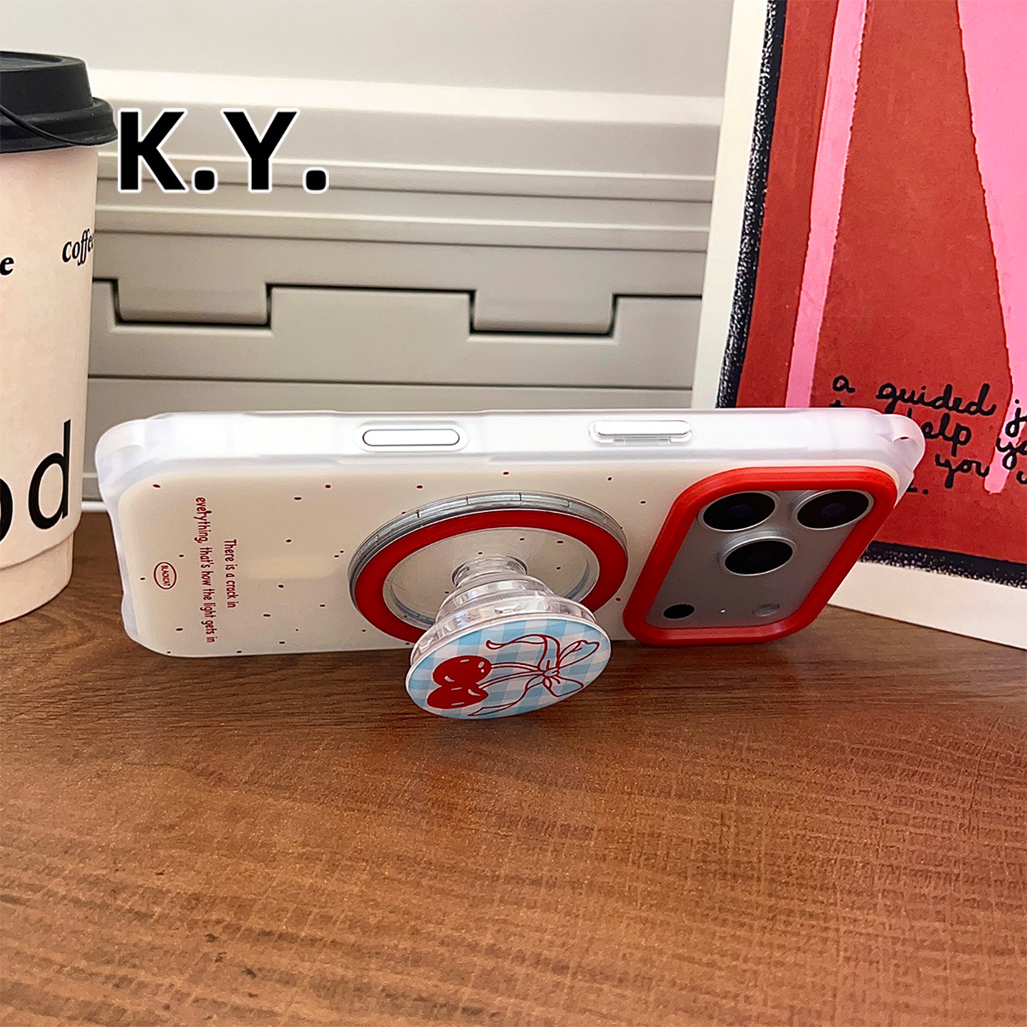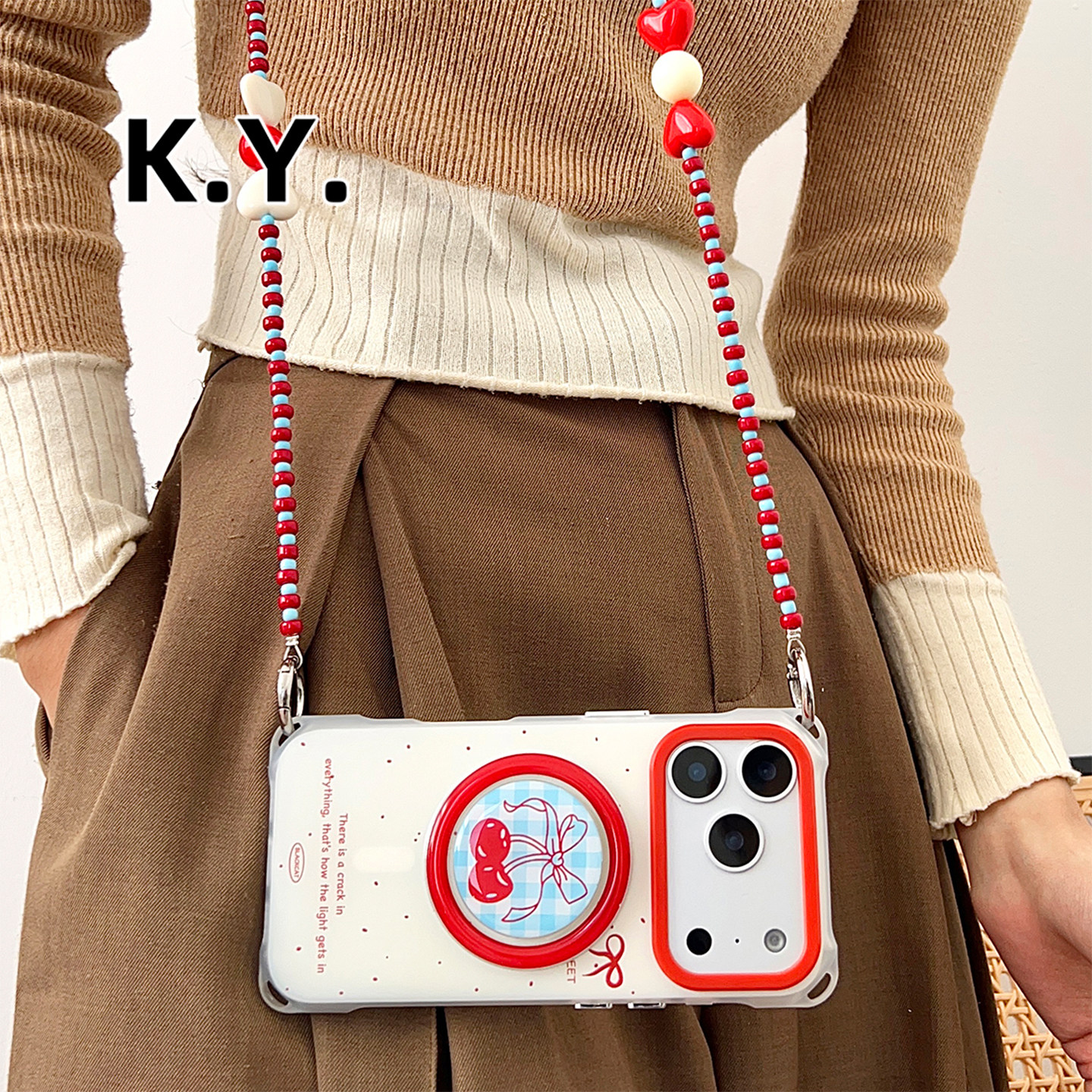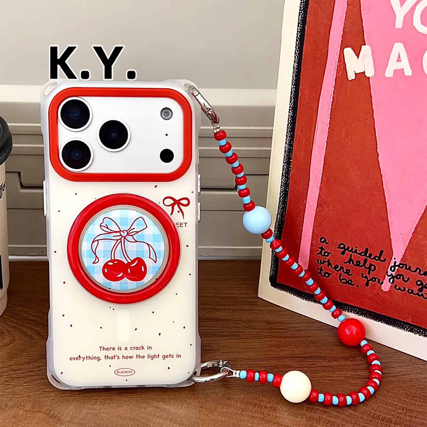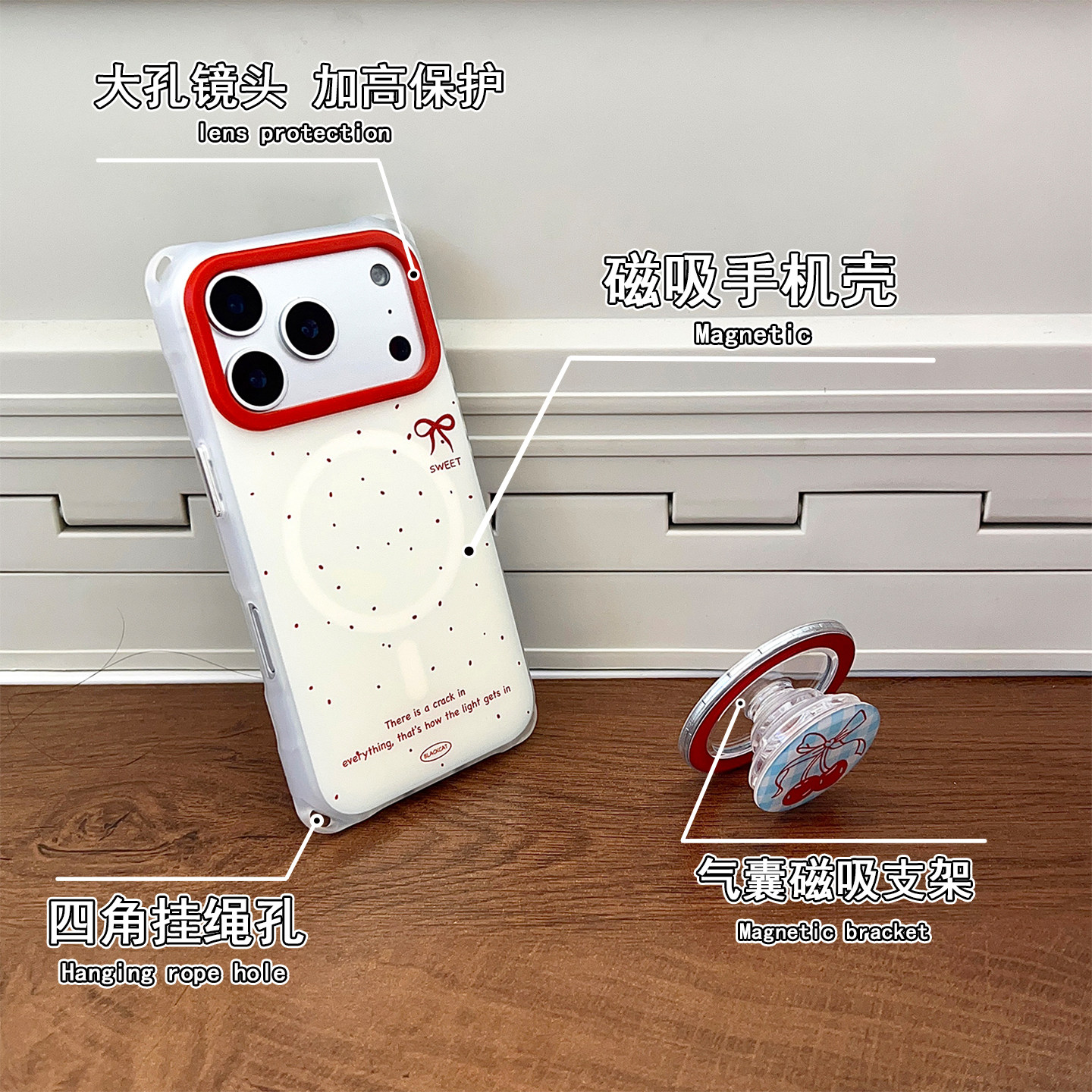 格纹樱桃磁吸气囊支架手机壳背带斜挎苹果17pro手提斜挎可背iphone16promax简约风防摔硬壳华为mate80promax