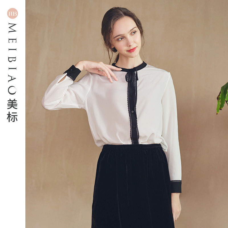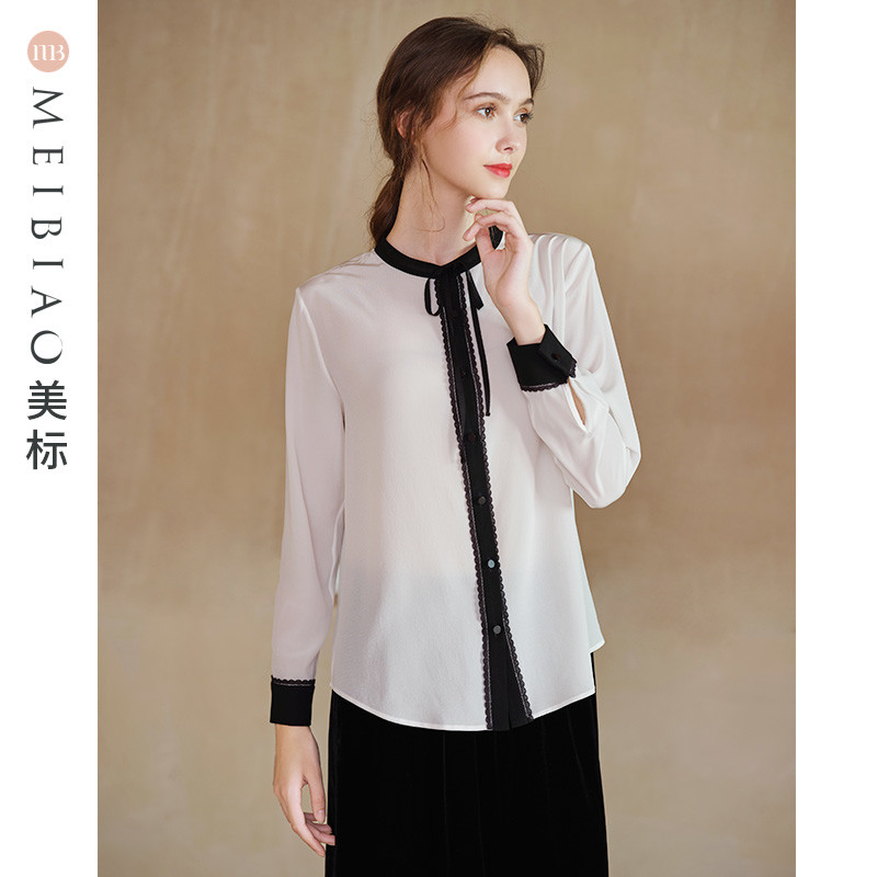 美标春夏新品法式气质优雅真丝宽松衬衫100%桑蚕丝女丝绸百搭上衣