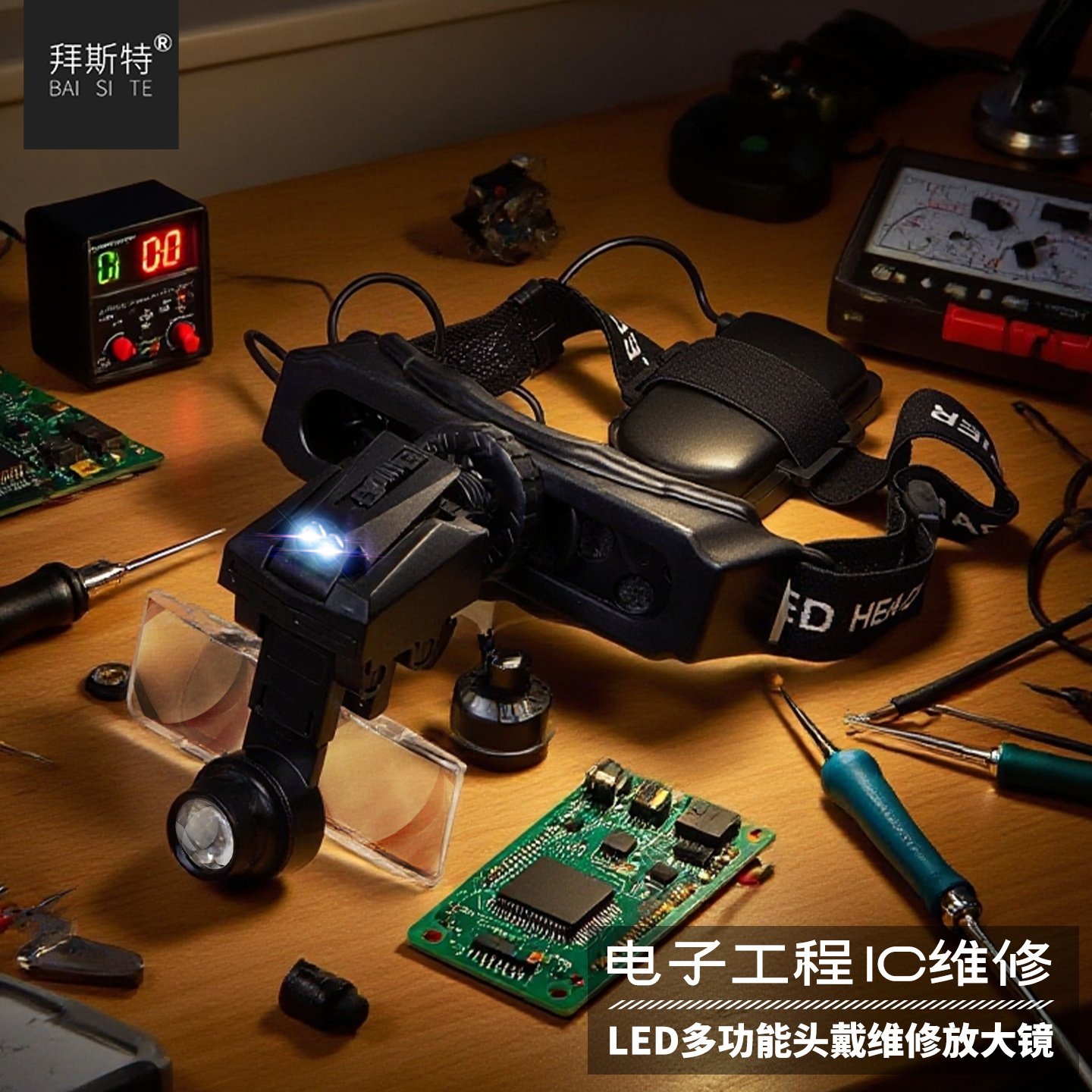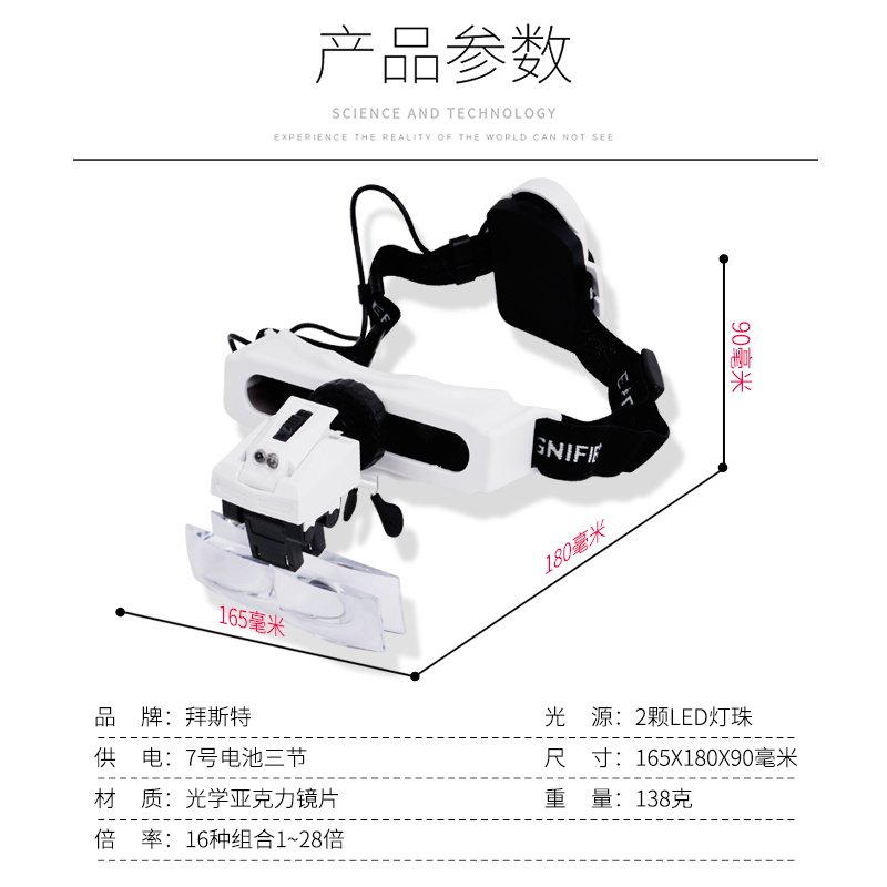 修锁工具放大镜头戴式多功能电子电路维修带灯28高清阅读看书老人