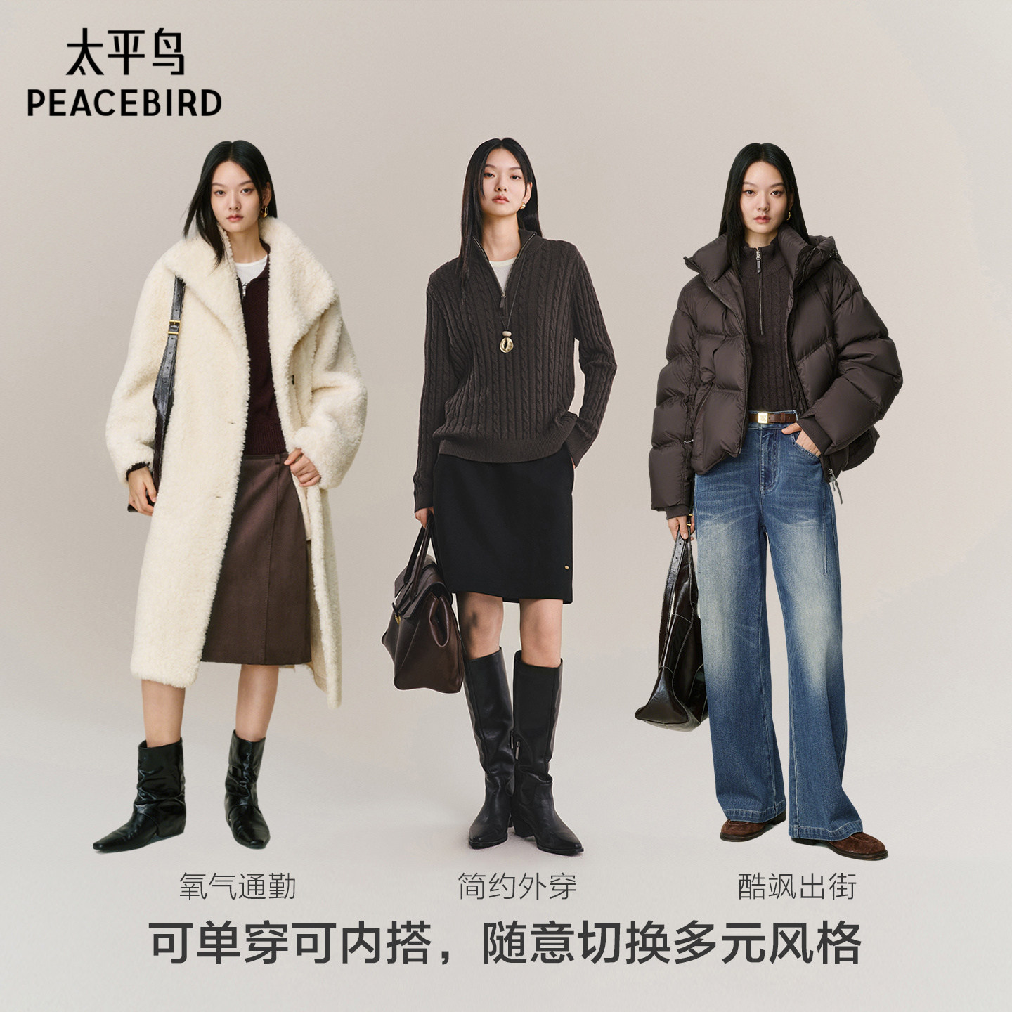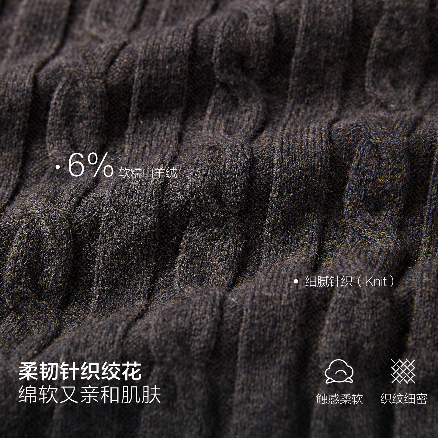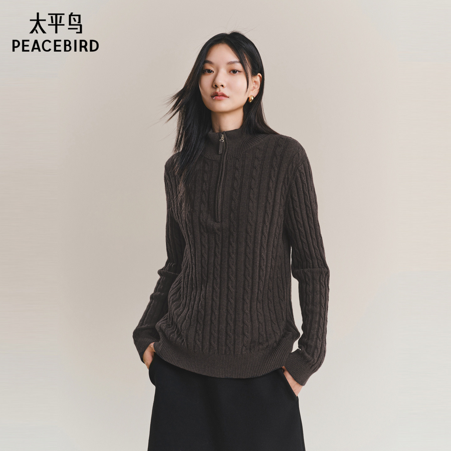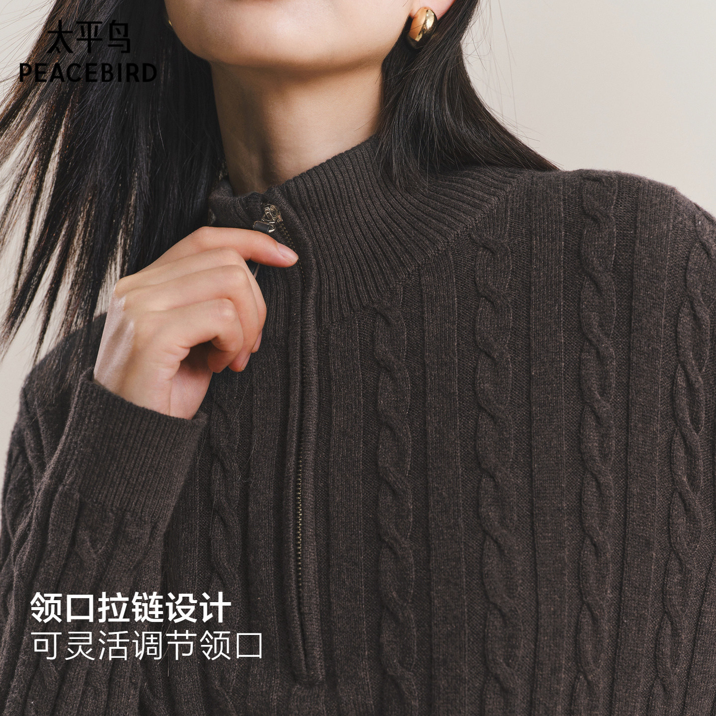 【商场同款】太平鸟羊绒混纺半开襟绞花半高领针织衫女A1EEF4518
