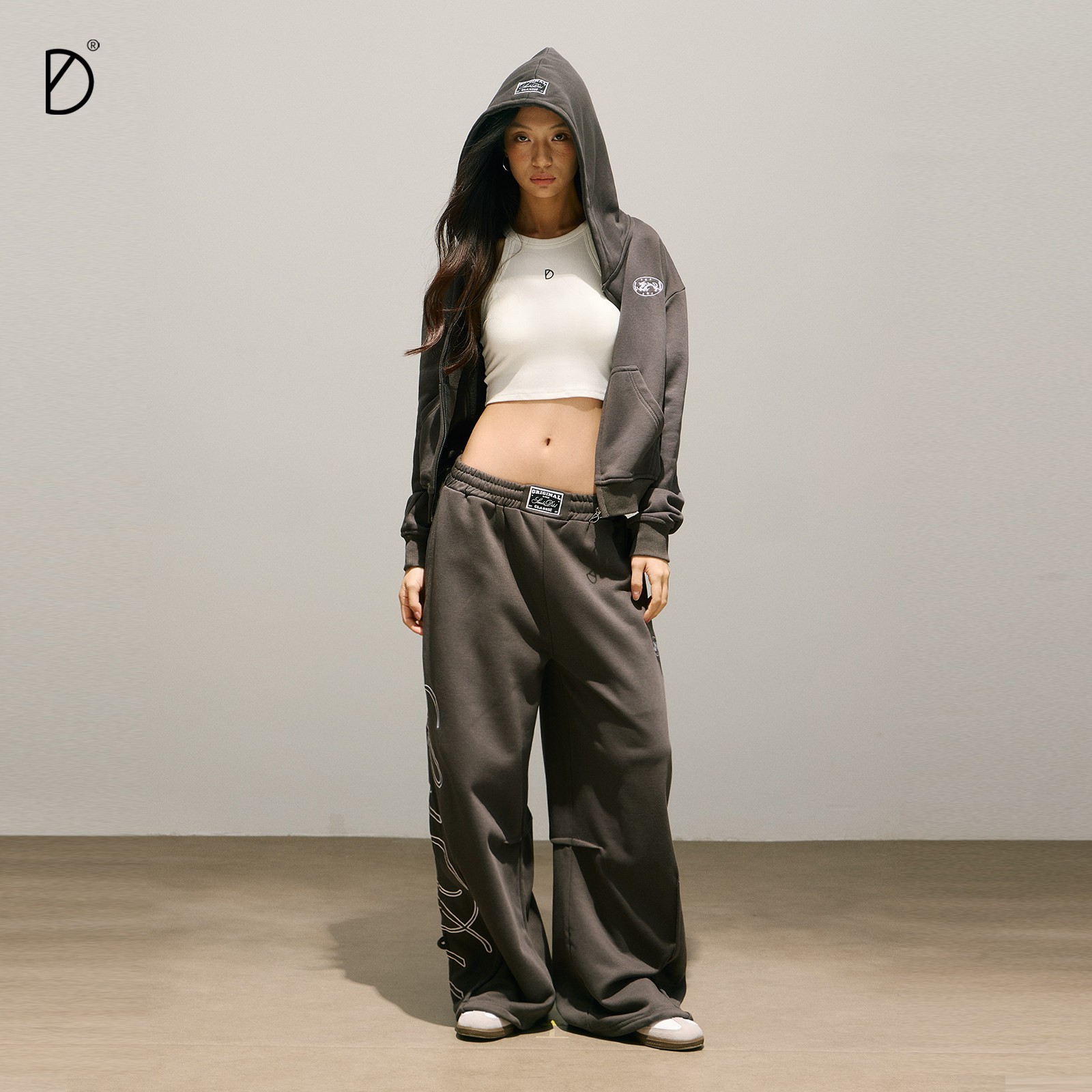 SMILE DDD拳击套装炭灰色360g美式开衫刺绣宽松简约运动休闲卫裤