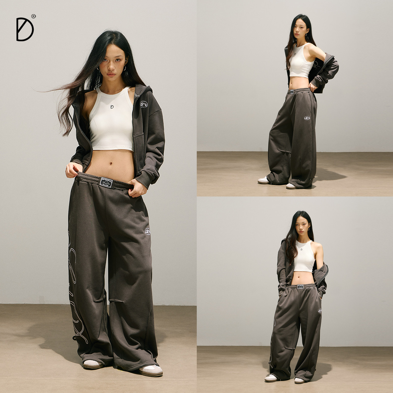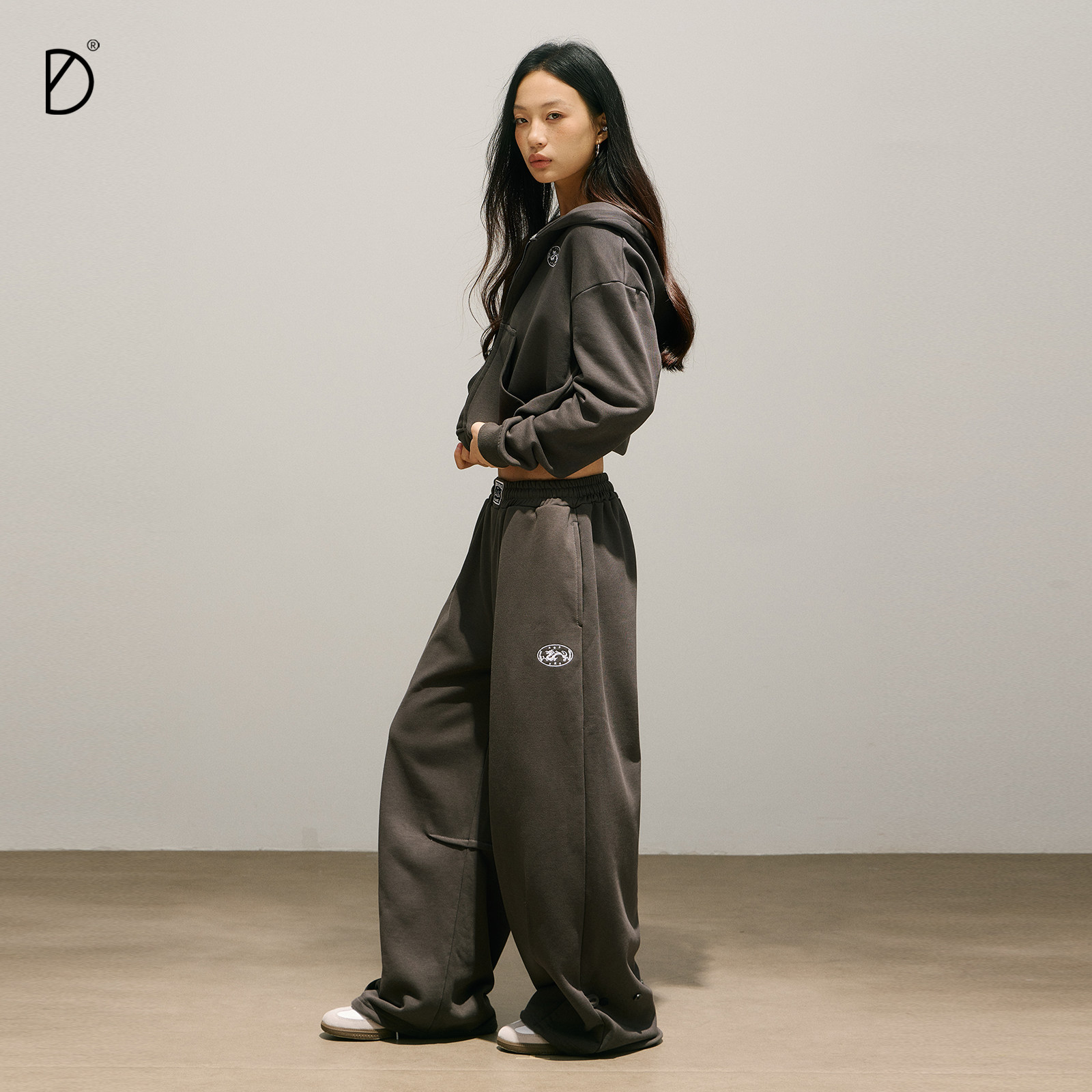 SMILE DDD毛边套装花灰色280g美式简约刺绣开衫宽松休闲运动卫裤