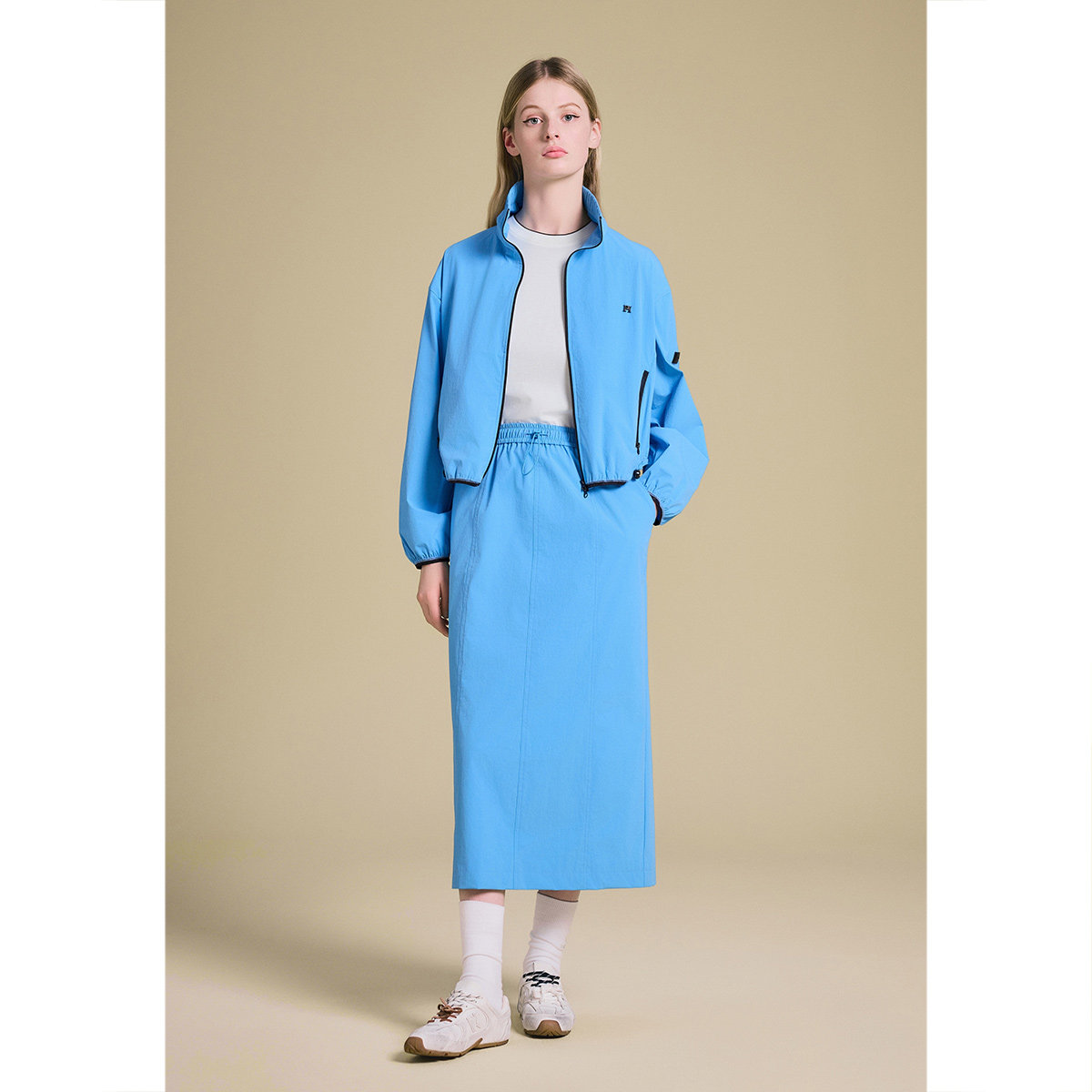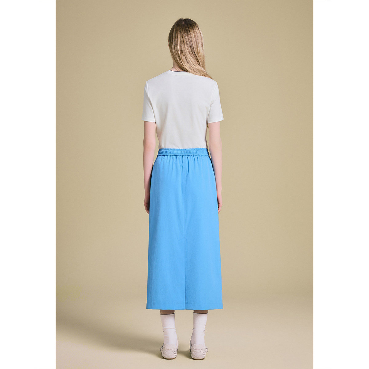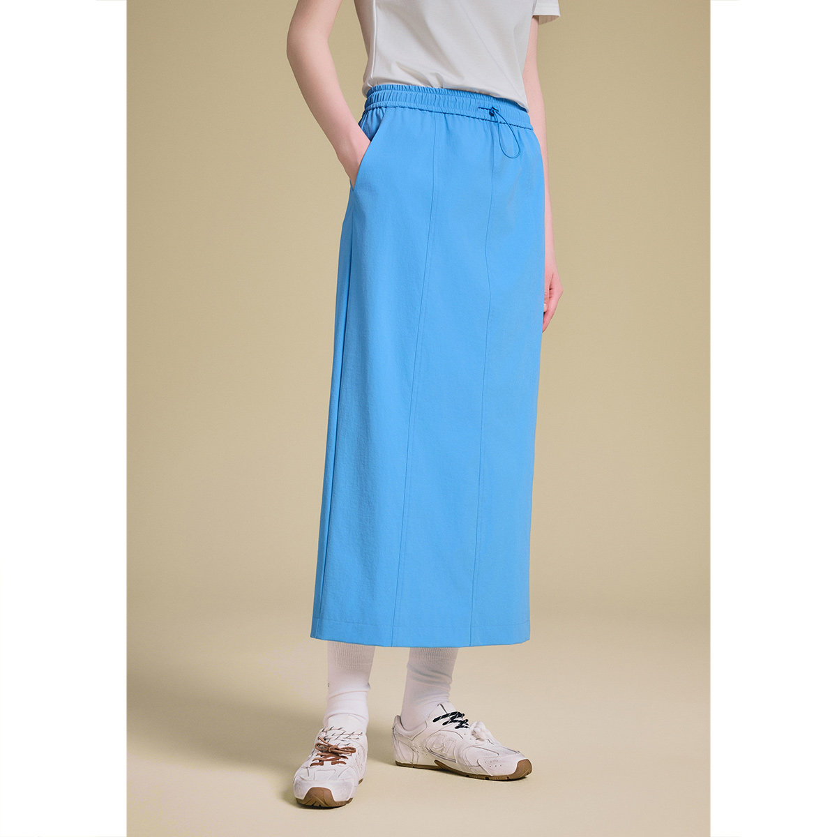 PSALTER诗篇湖蓝微皱四面弹松紧腰工装风半身裙2025夏款