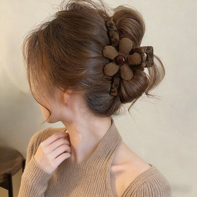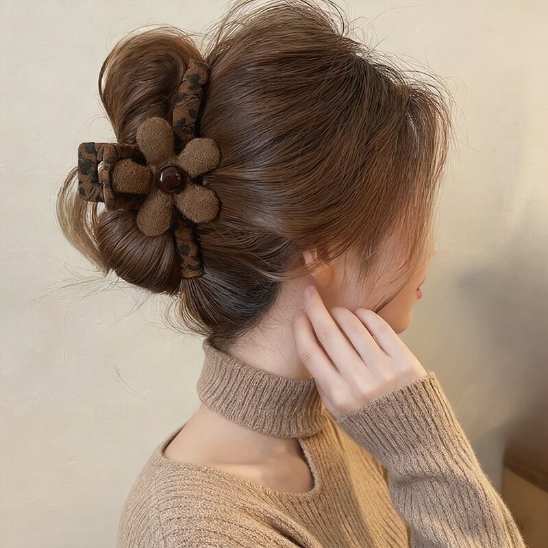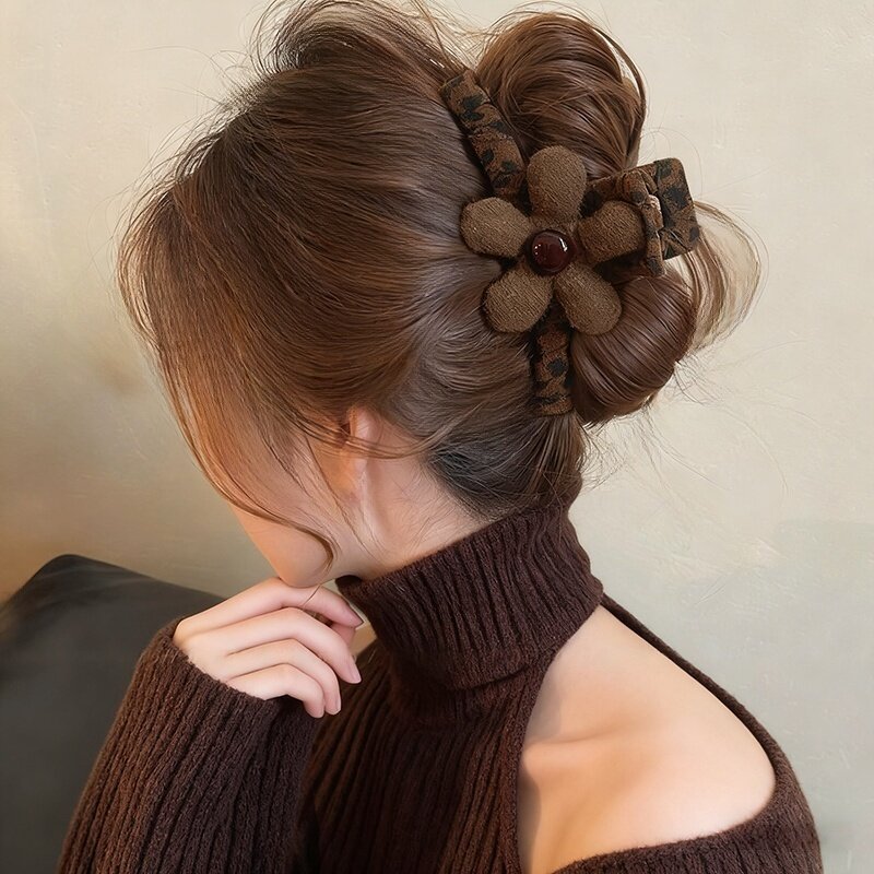 美拉德秋冬豹纹花朵抓夹女2025新款高级感后脑勺发夹鲨鱼夹盘发饰