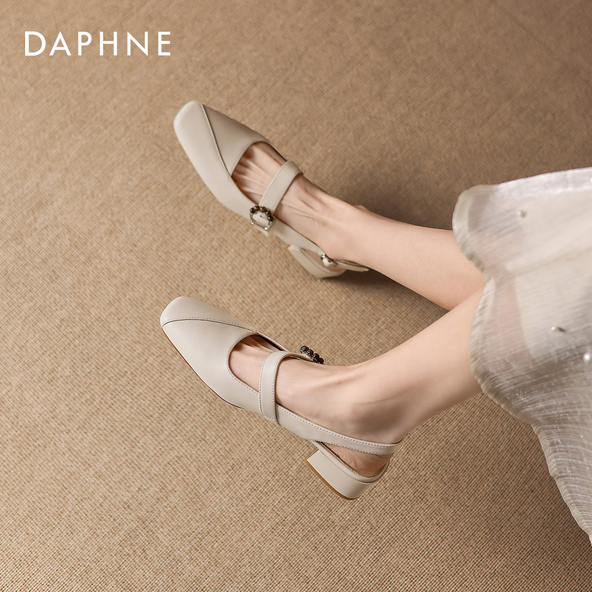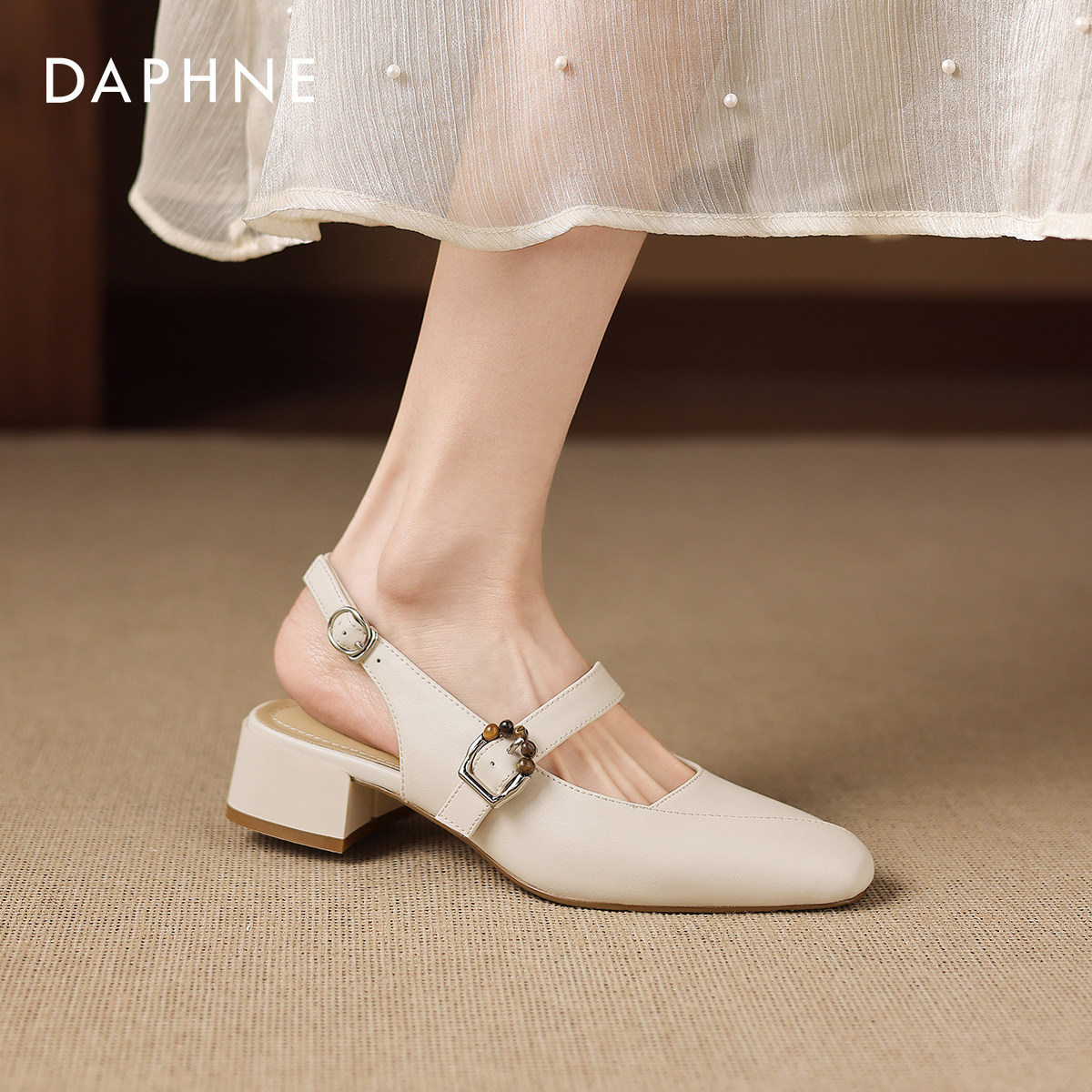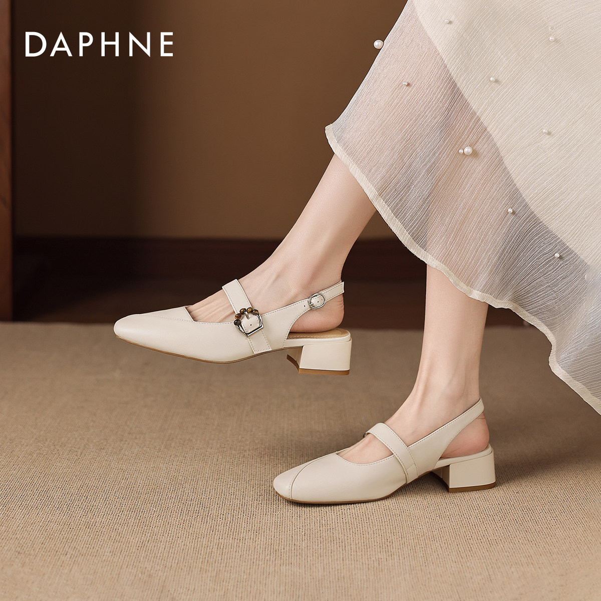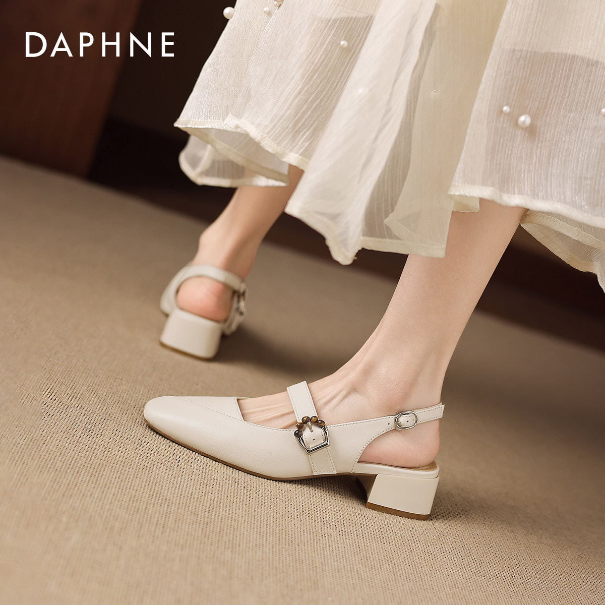 达芙妮包头凉鞋女2026新款春季软皮法式粗跟玛丽珍女鞋配裙子单鞋