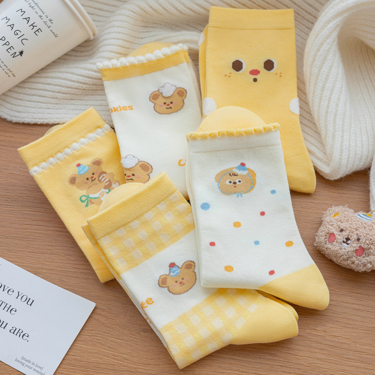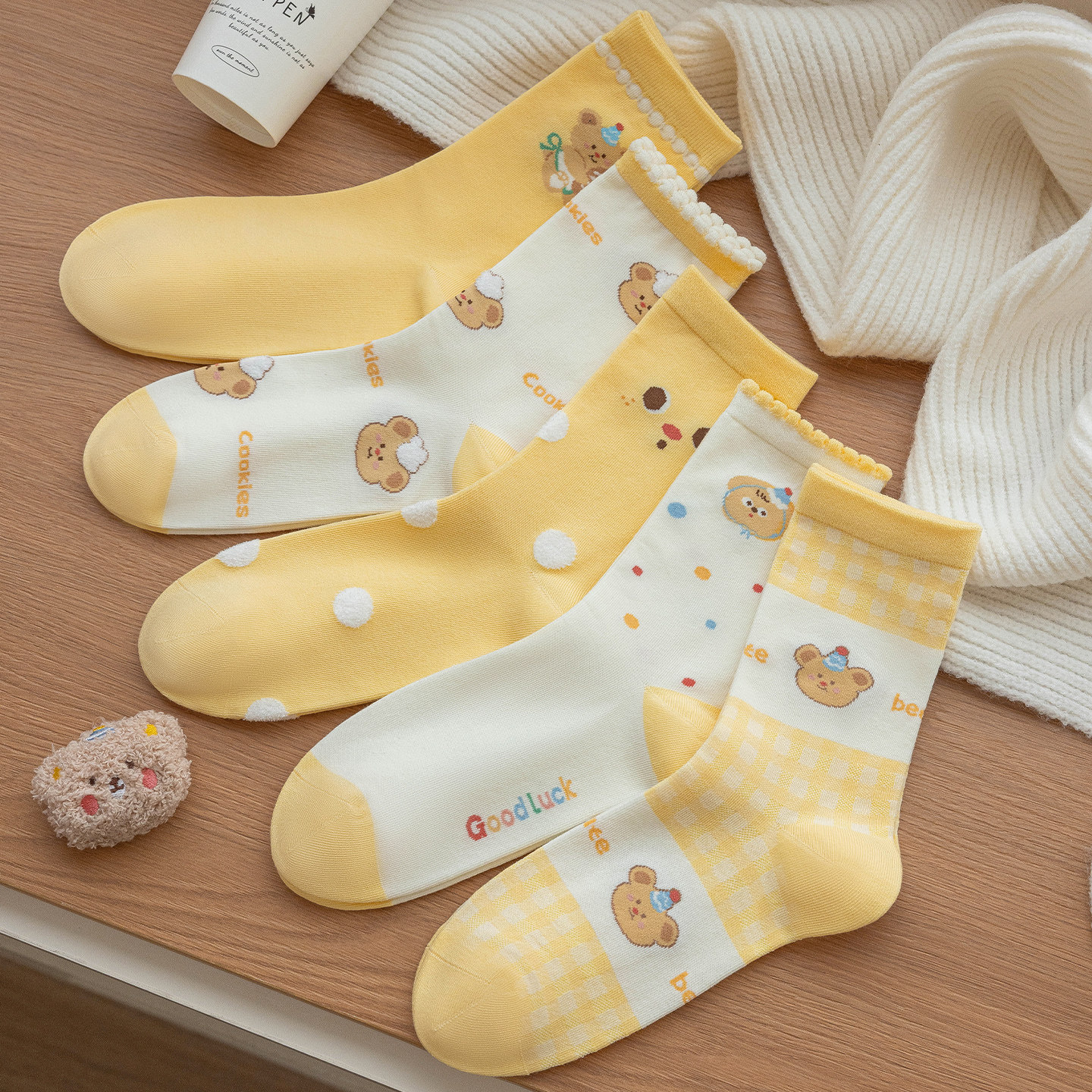 卡拉美拉袜子女春秋棉袜吸汗2026新款可爱卡通中筒袜穿搭潮流女袜