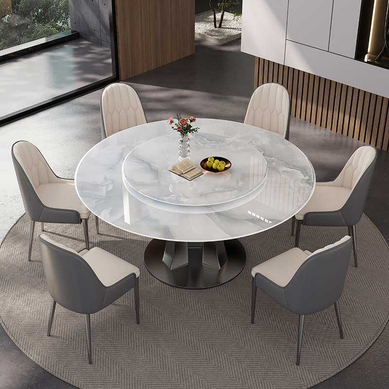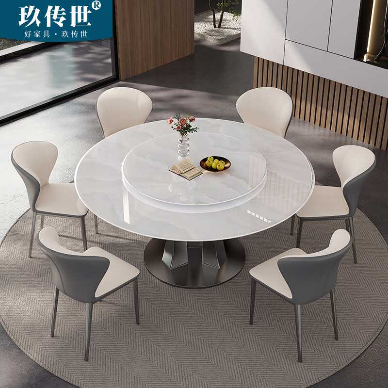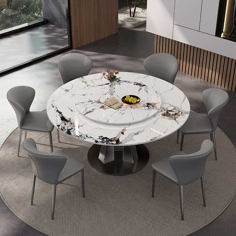 新款意式轻奢天然超晶石餐桌奢石微晶石圆桌家用岩板新款大理石圆