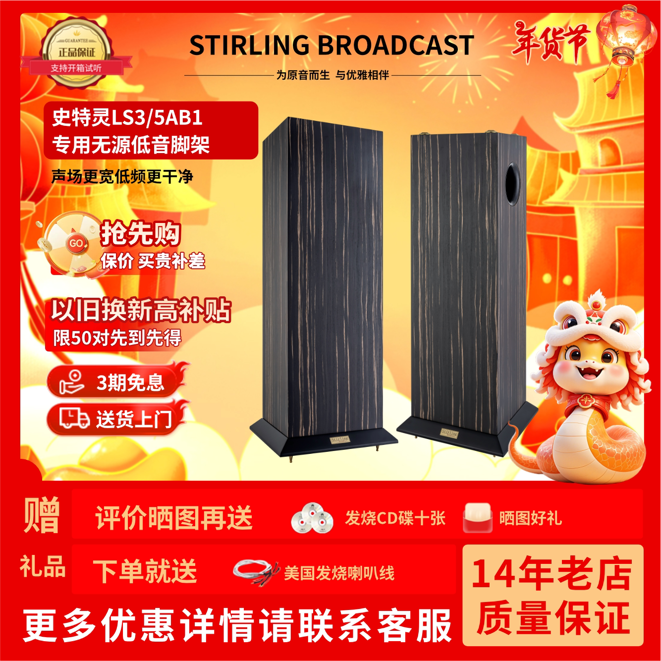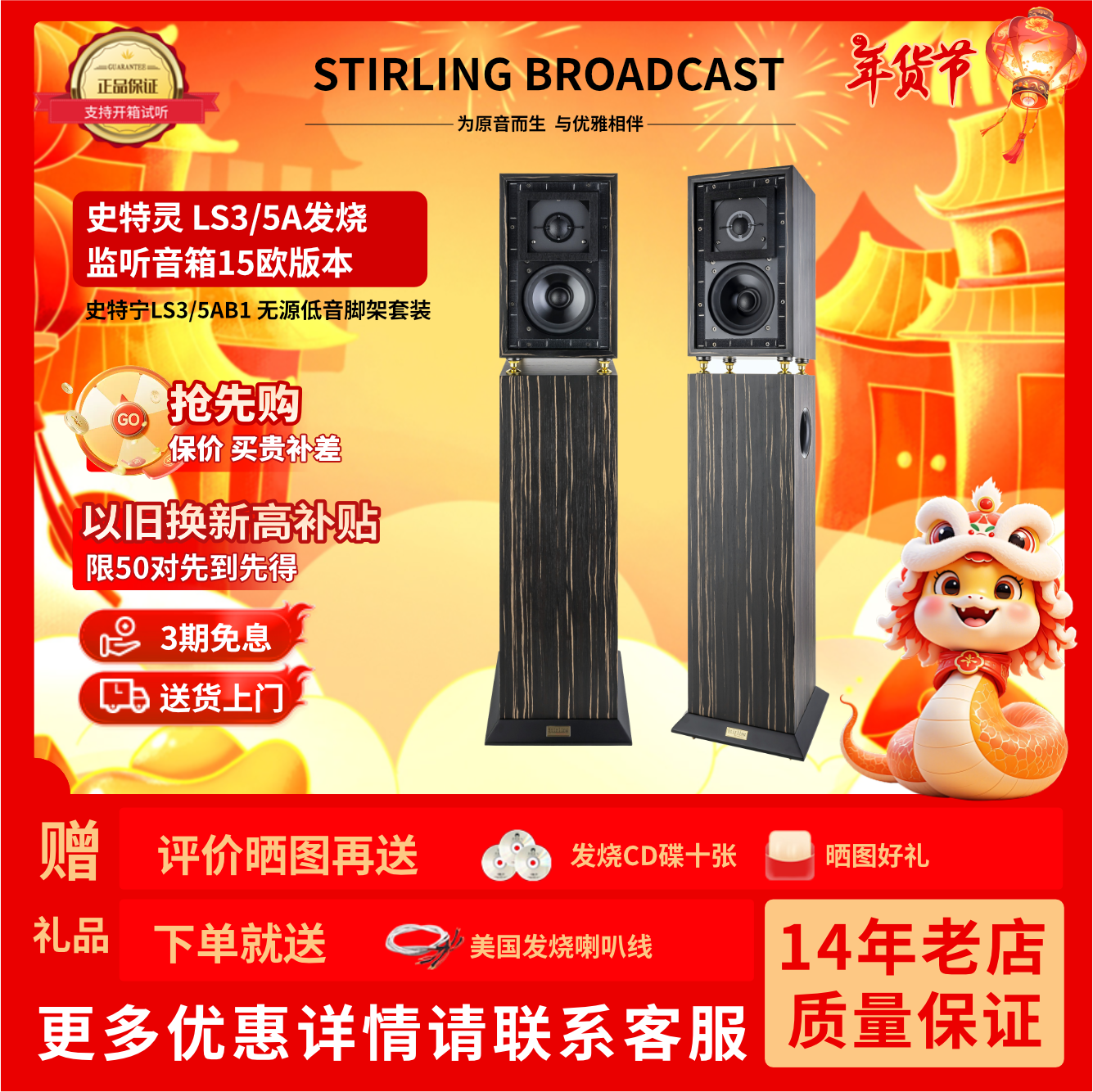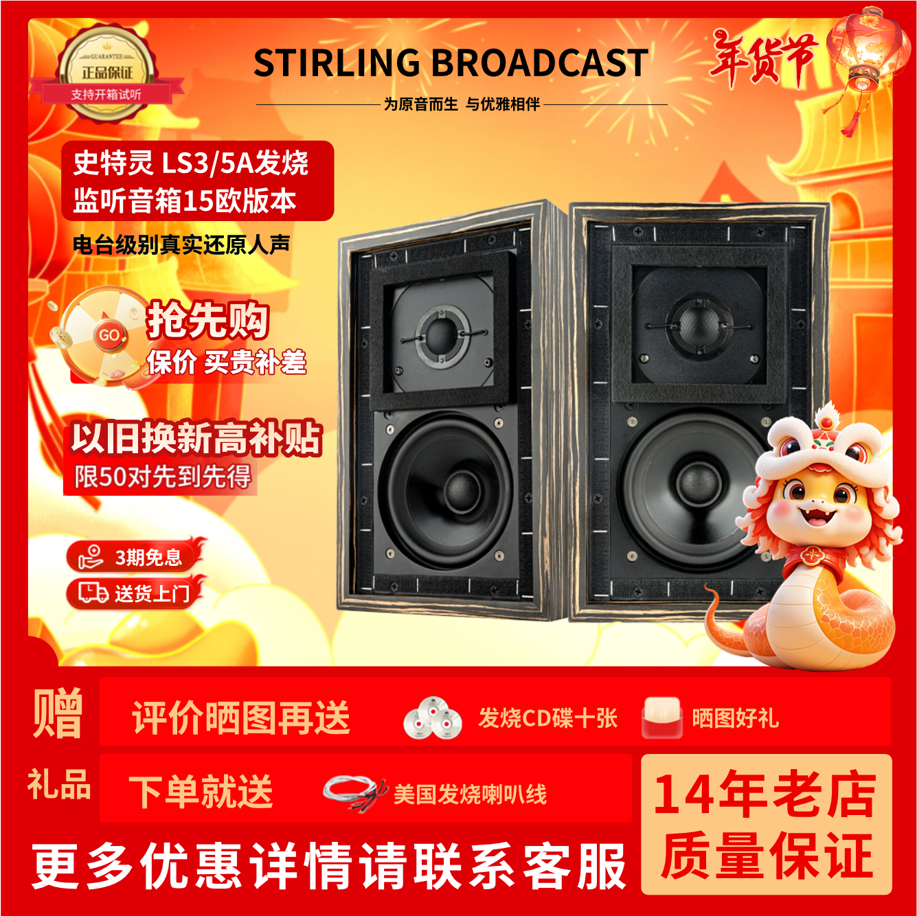 Stirling史特灵LS3/5a 发烧无源5寸专业监听实木高保真书架音箱