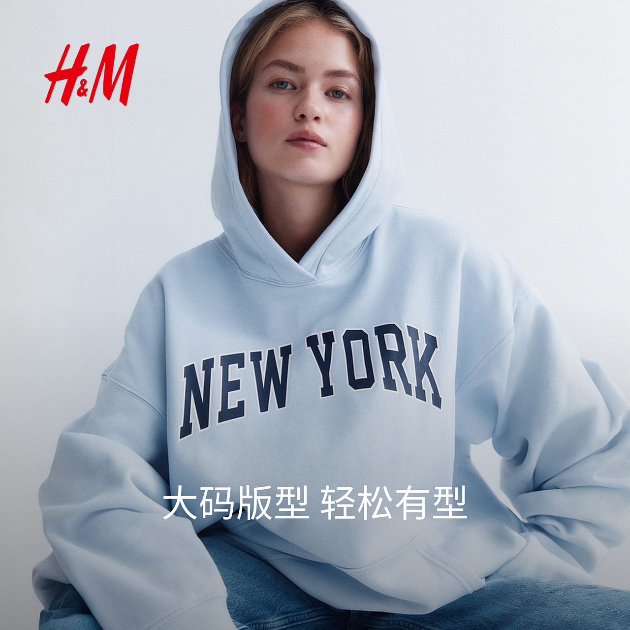 HM女装卫衣2025冬季新款时尚长袖潮流大廓形美式连帽衫1301028