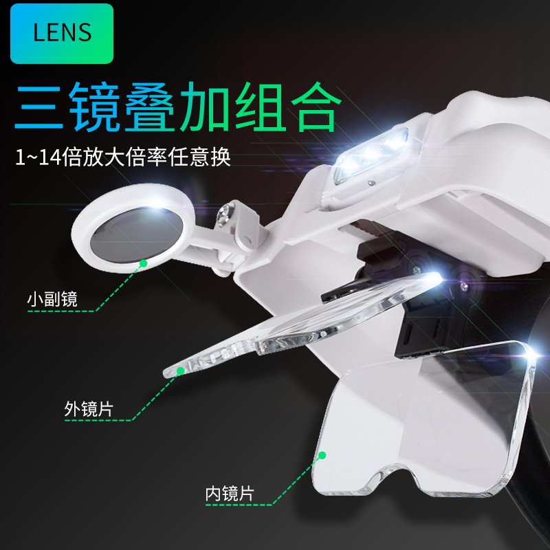 头戴式放大镜工业电子电路板维修专用带灯高清修表核雕模型老人