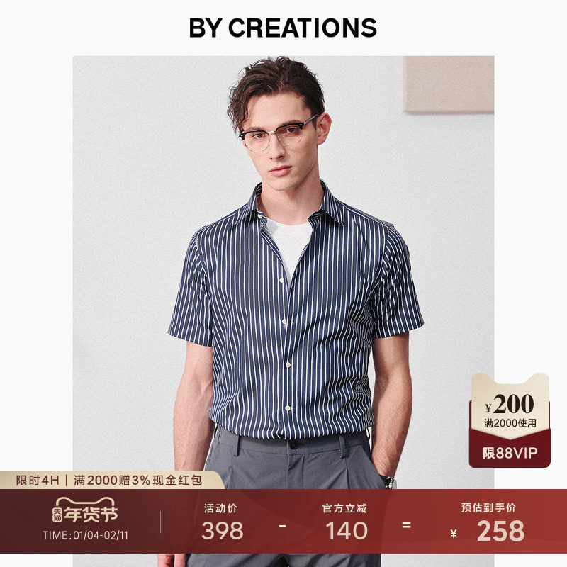 液氨易打理纯棉商务短袖衬衫男修身防皱正装职业上班通勤条纹衬衣