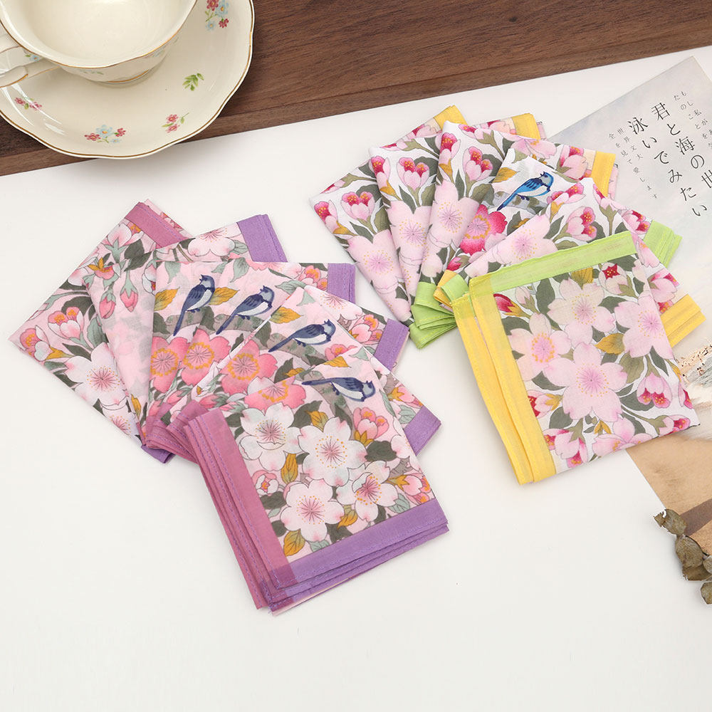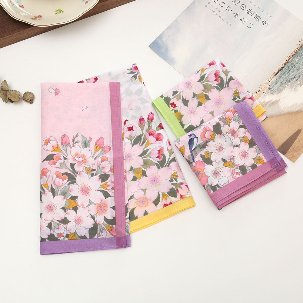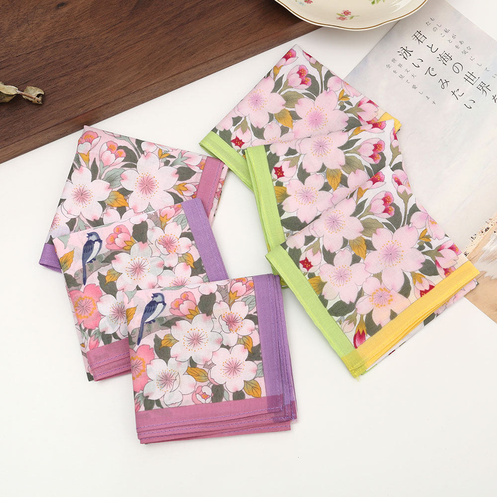 43cm女士纯棉印花手帕老式怀旧薄款吸水擦汗手巾古风花朵手绢方巾