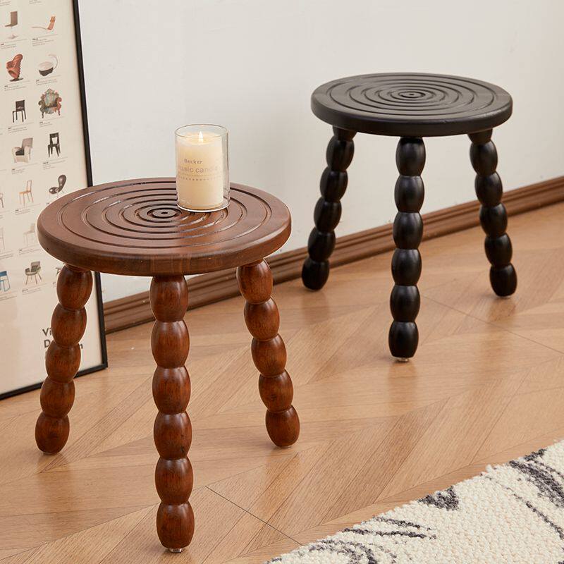 2024Atlier中古凳法式复古实木小矮凳木质圆凳奶木凳小众工匠换鞋