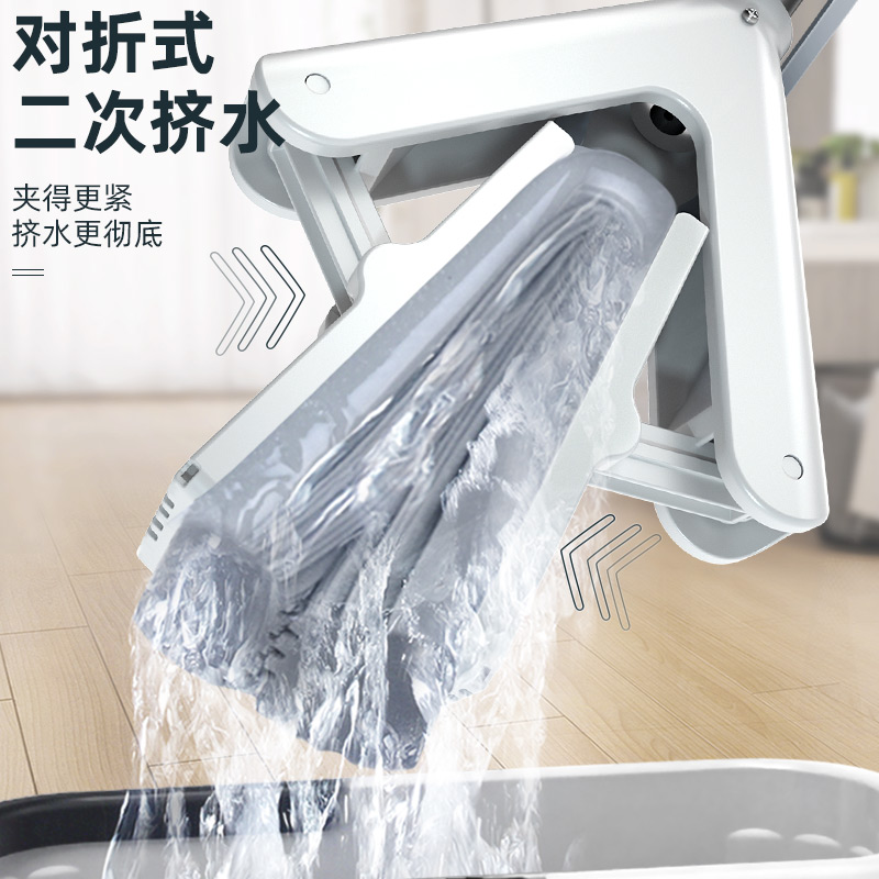 美丽雅净爽胶棉拖把对折挤水家用免手洗+海绵替换头