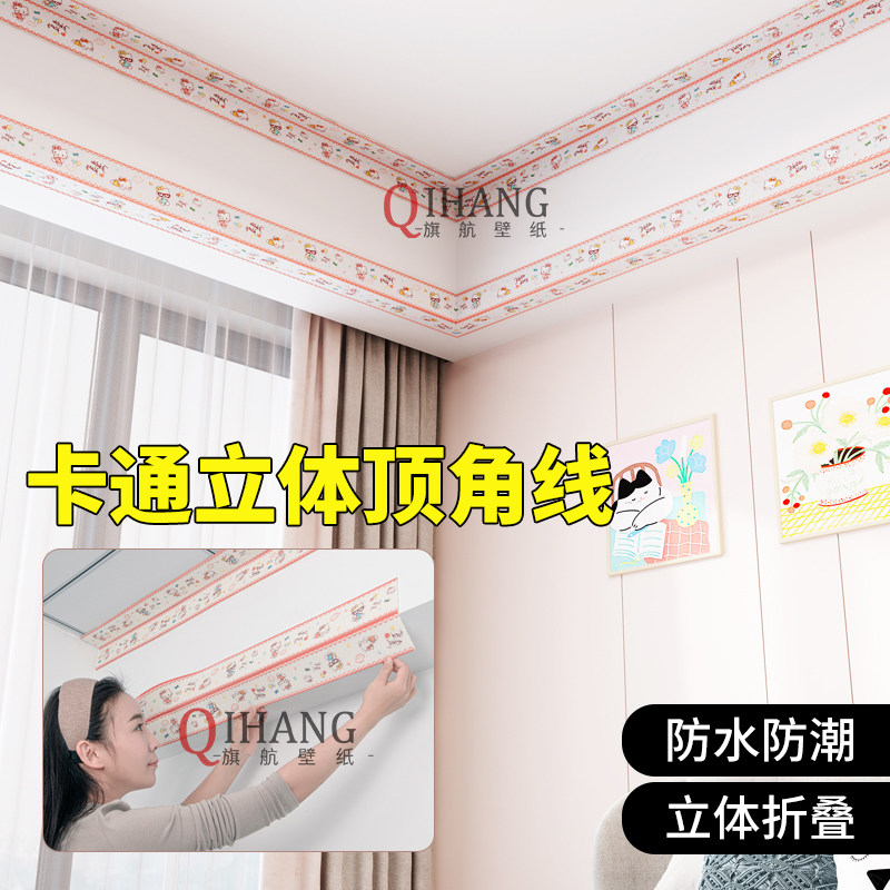 阴阳顶角线3d立体天花板自粘防潮防水卡通儿童房腰线遮丑装饰条