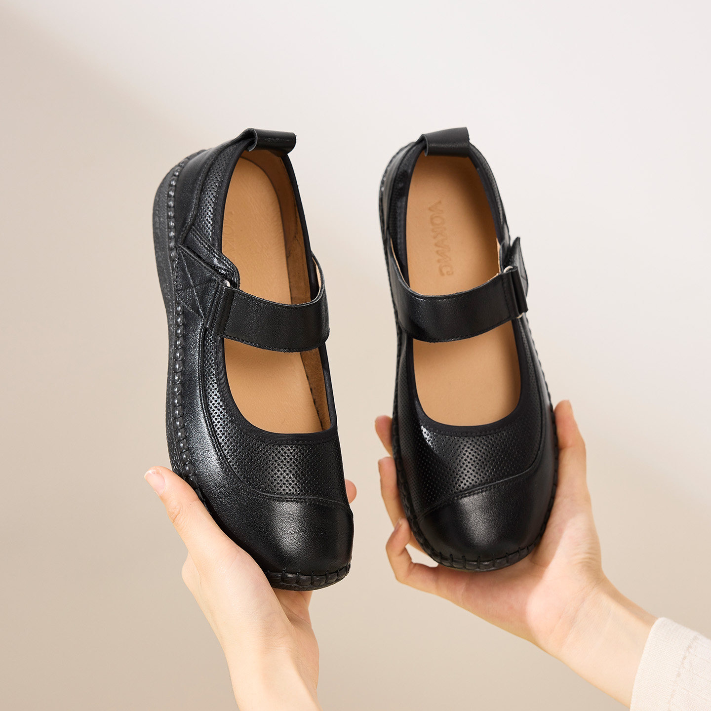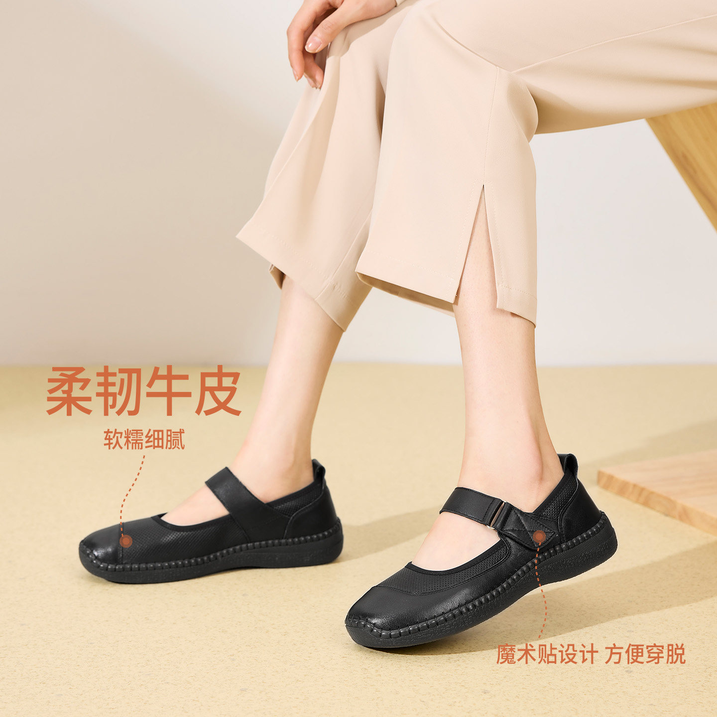 奥康 女鞋2026春季新款舒软鞋魔术贴真皮简约妈妈鞋百搭平底鞋