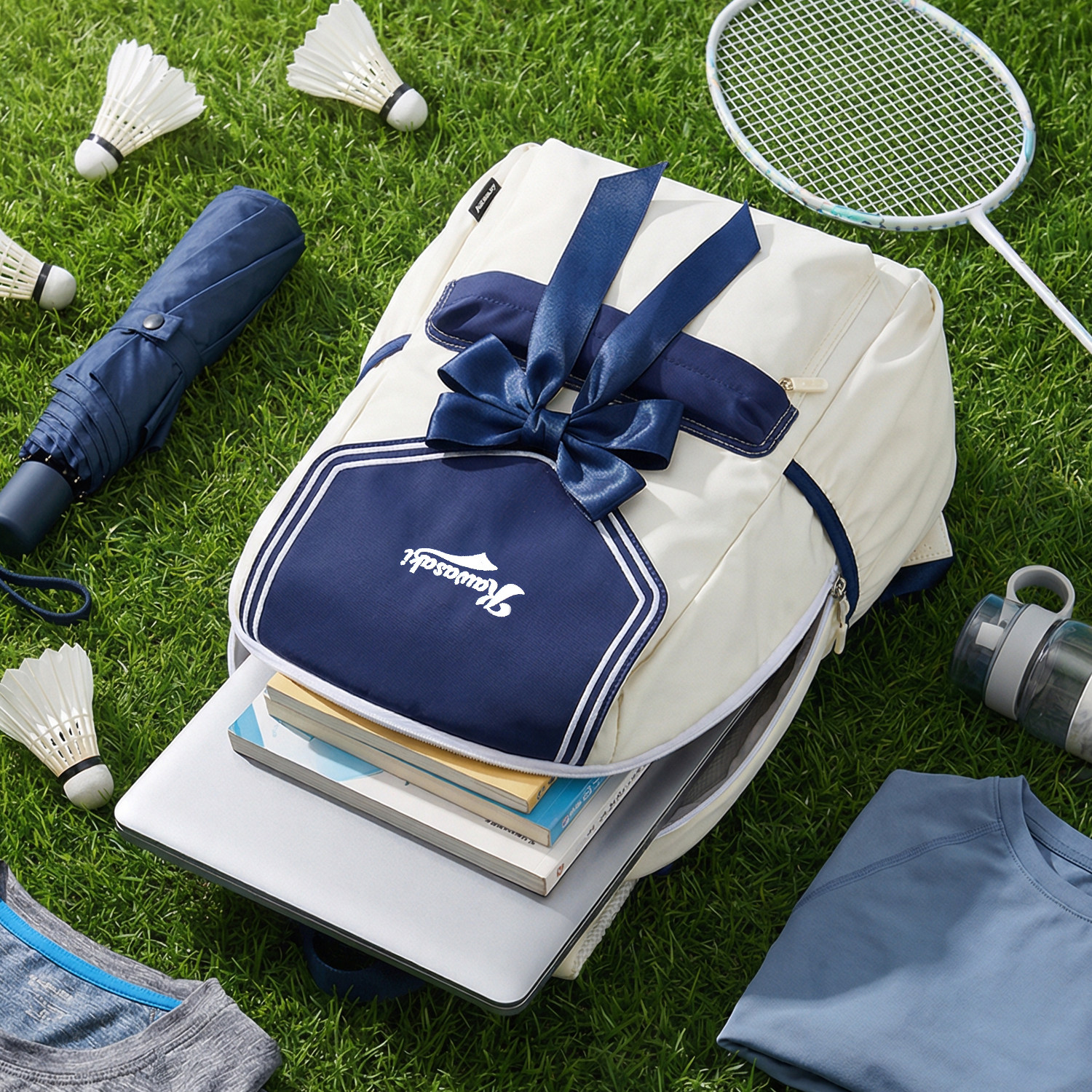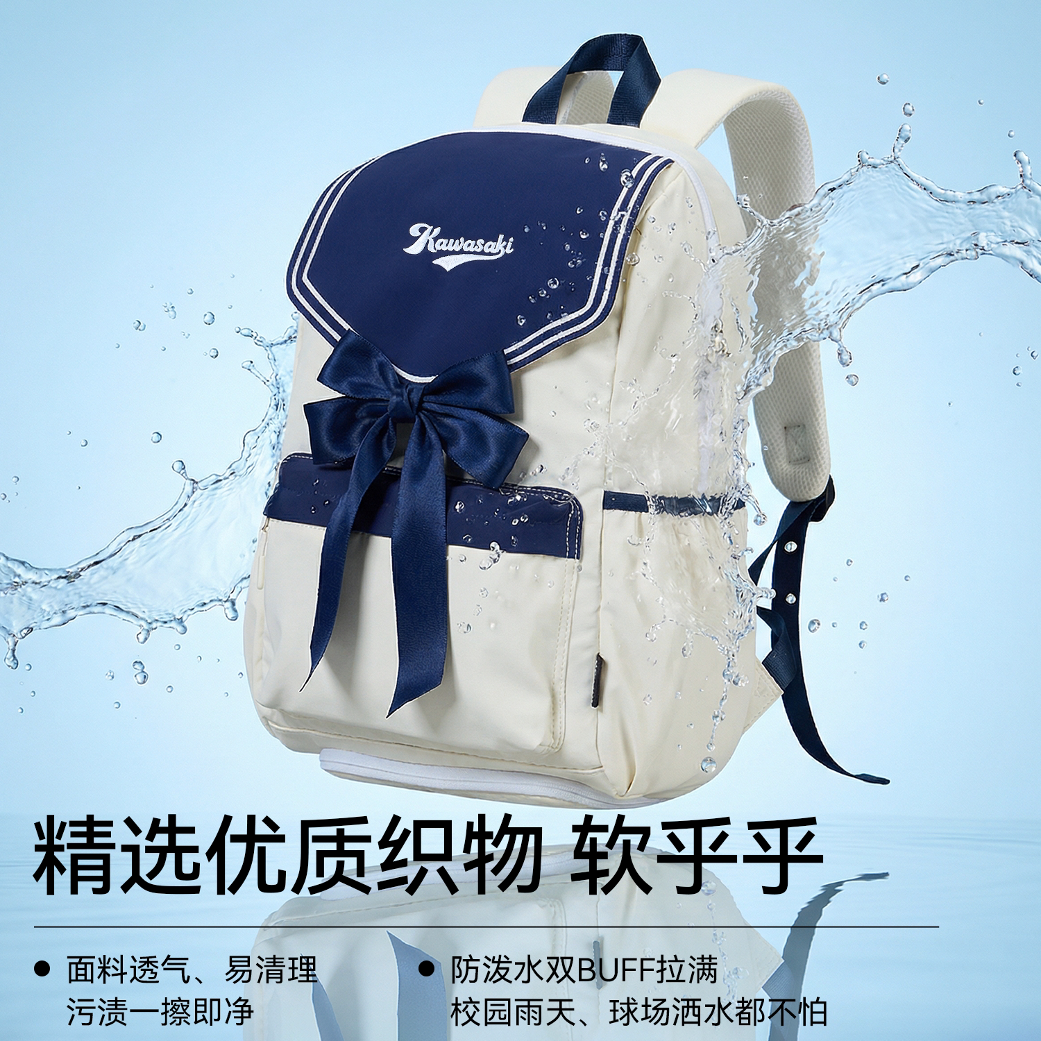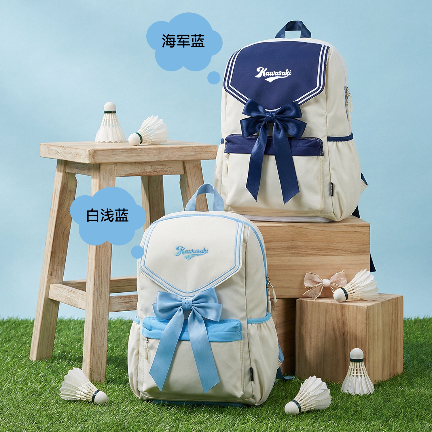 kawasaki川崎羽毛球包女JK蝴蝶结学院风系列运动双肩旅行背包轻便