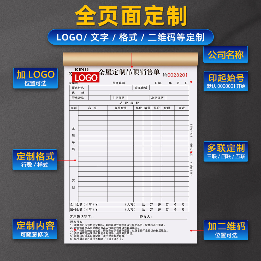 【集成吊顶店专用】销售单定制装修订货送货清单订单本安装报价表