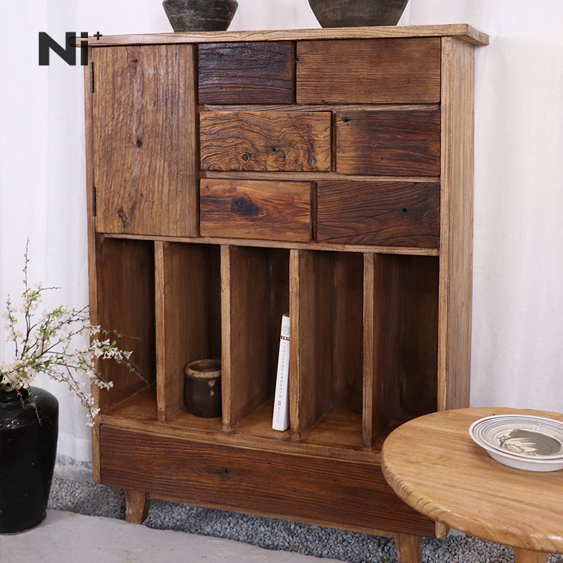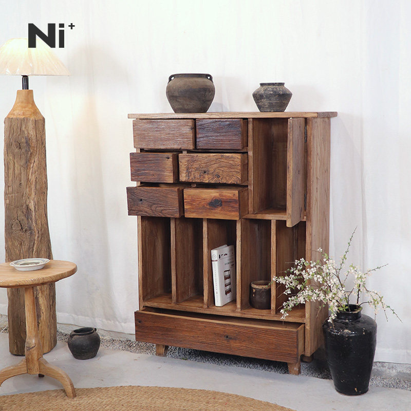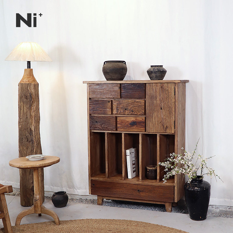 Ni尼家侘寂风边柜实木餐边柜老榆木装饰储物柜民宿家具中古玄关柜
