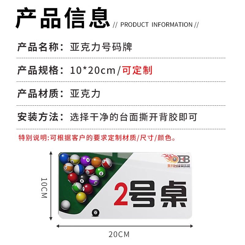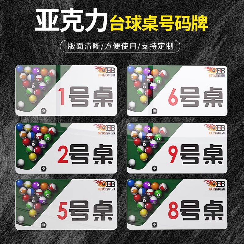 台球桌号码牌台球厅数字贴桌球俱乐部会所桌号牌定制位置顺序编号牌台杆柜号亚克力桌牌标签贴指示牌标识墙贴
