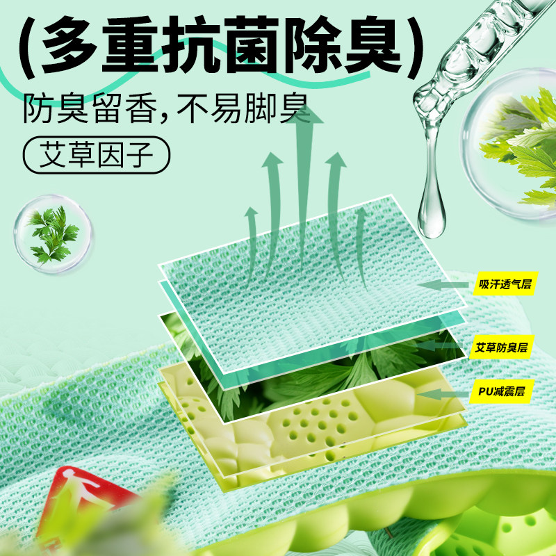 鞋垫男吸汗防臭抗菌减震运动软艾草透气久站不累除臭踩屎感保暖冬
