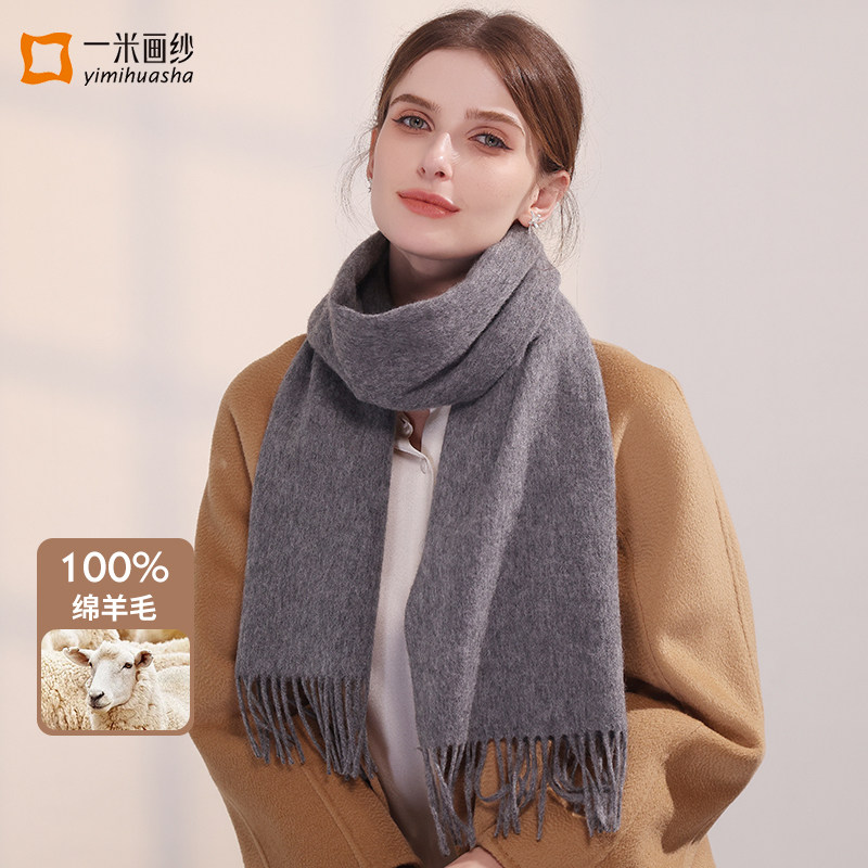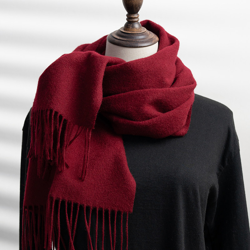 羊毛围巾女2025新款冬红色年会羊绒女生披肩纯色加厚女士围脖护颈