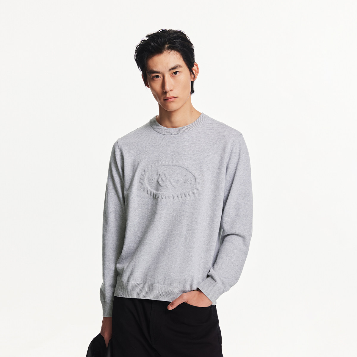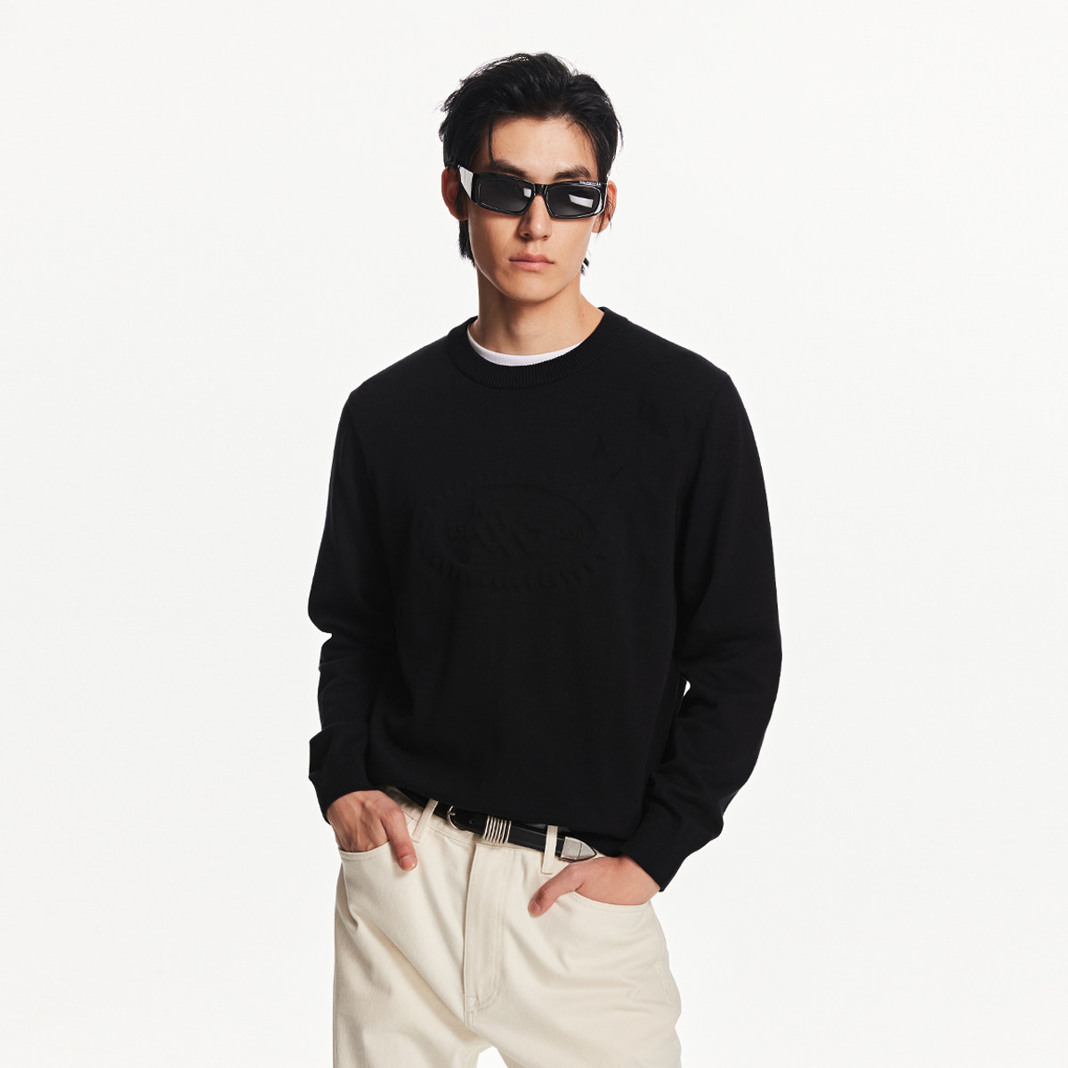 直筒,罗纹圆领,胸前立体钢印图案