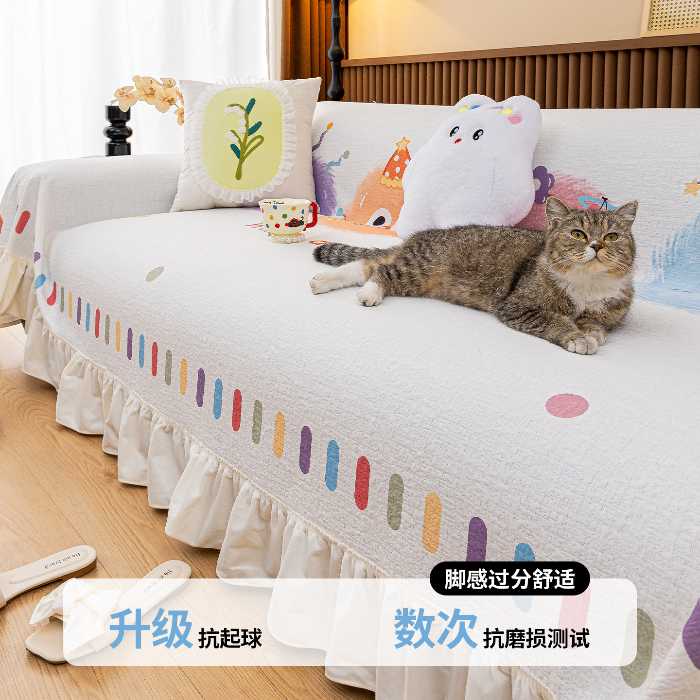敏顺夏季沙发盖布凉感轻奢艺术防猫抓沙发套罩防滑沙发垫2025新款